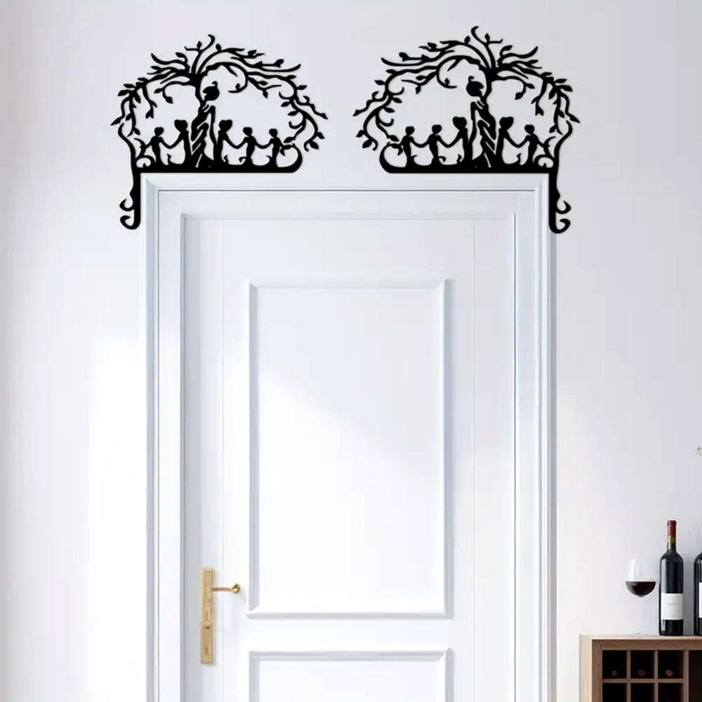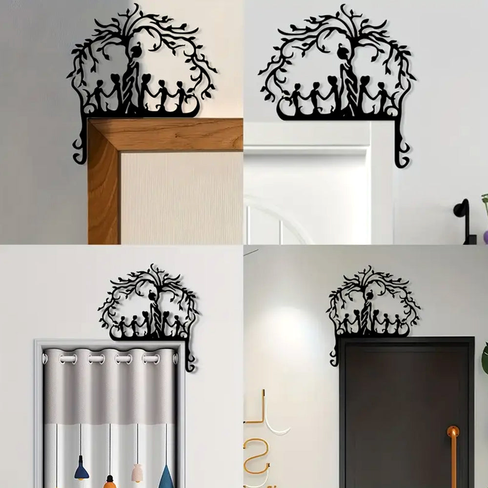 Arbre de la Vie Mère et Jeunes Enfants Plaque d'Angle de Porte en Métal
