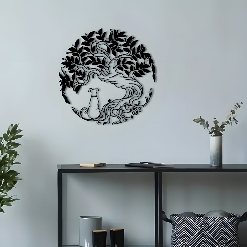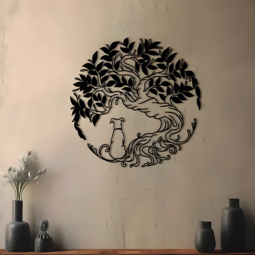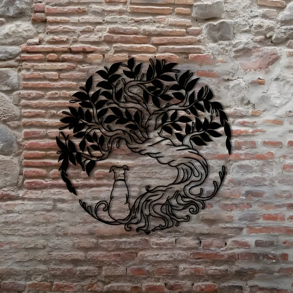 Arbre de la Vie en Fer et Chien Métal Décoratif Mural