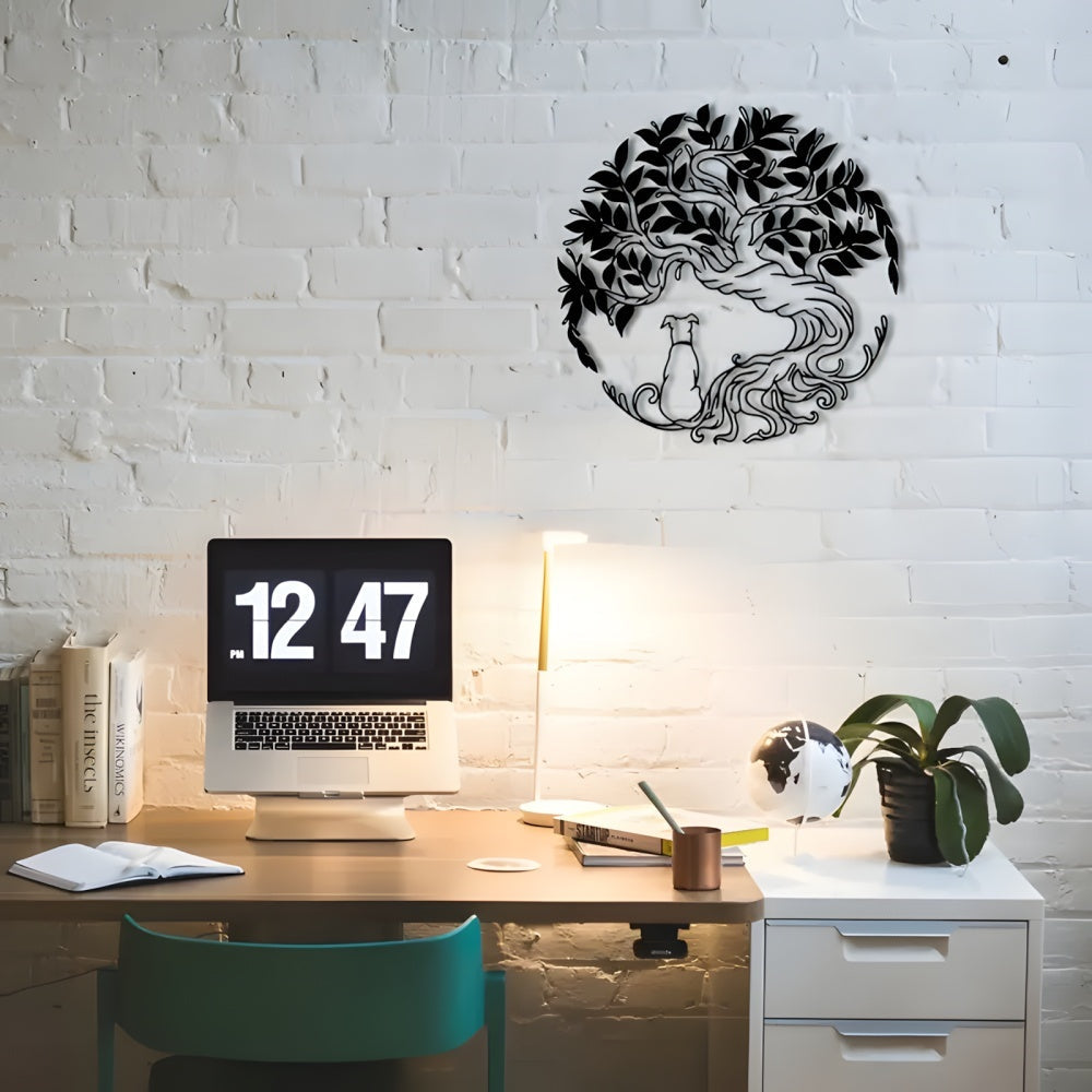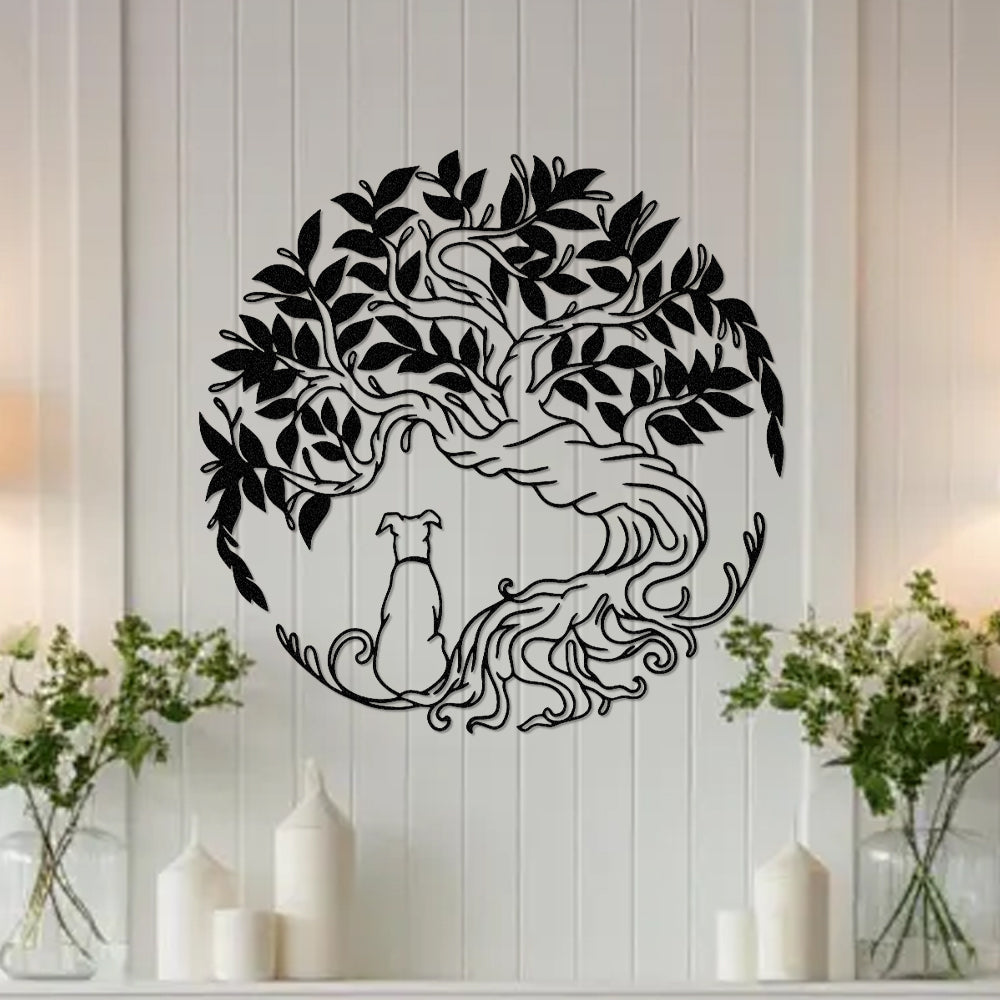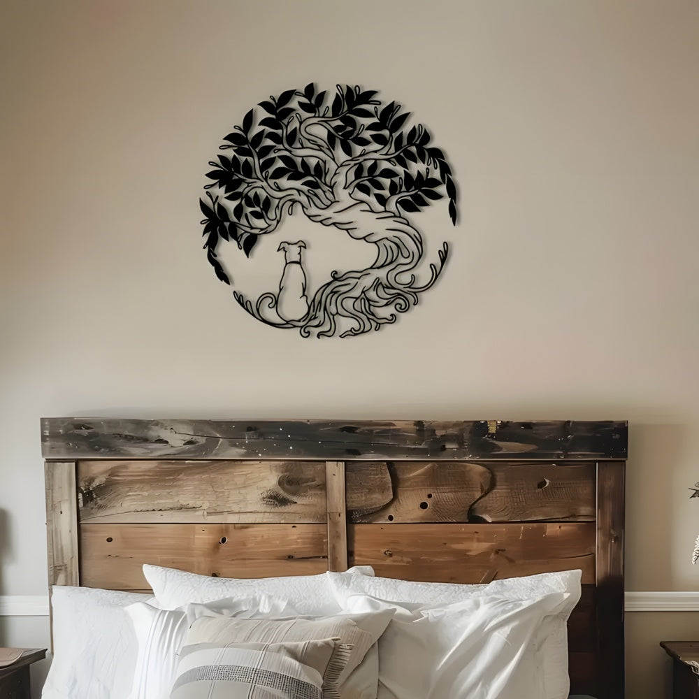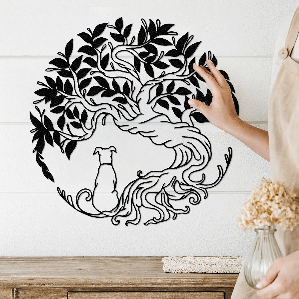 Arbre de la Vie en Fer et Chien Métal Décoratif Mural