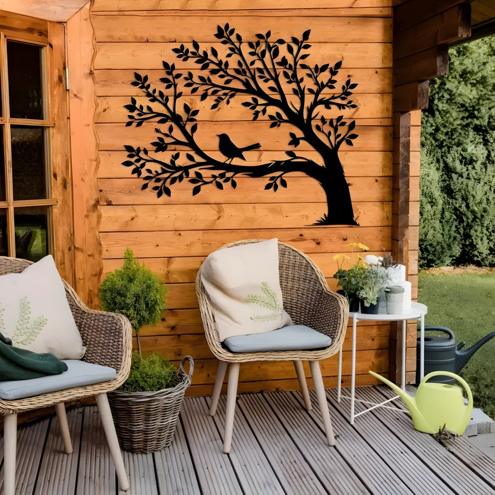 Arbre de la Vie et Oiseau Métal Décoratif Mural