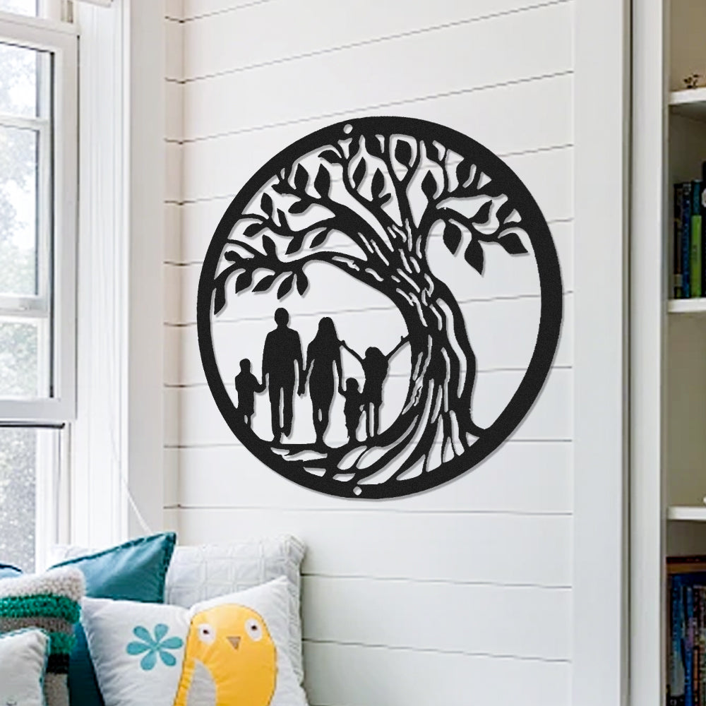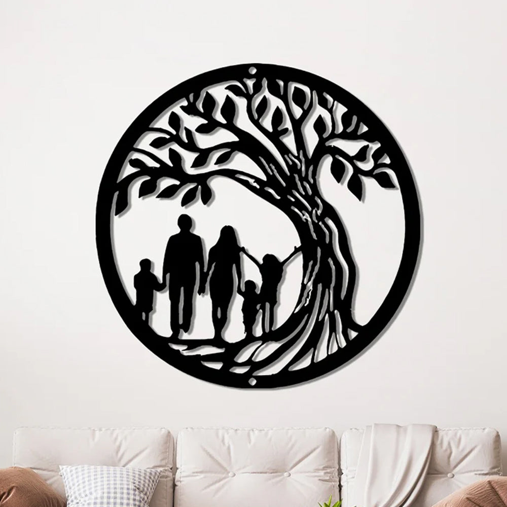 Une Famille Sous l'Arbre de la Vie Métal Décoratif Mural