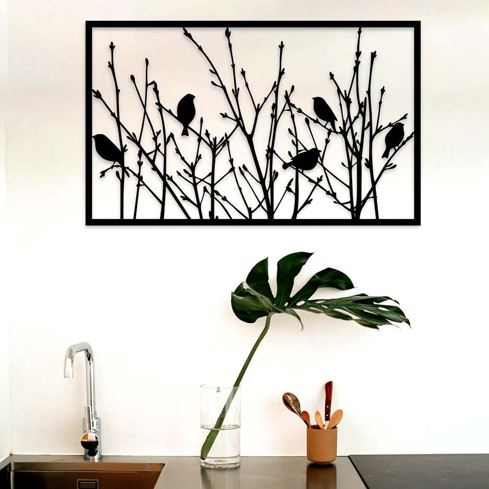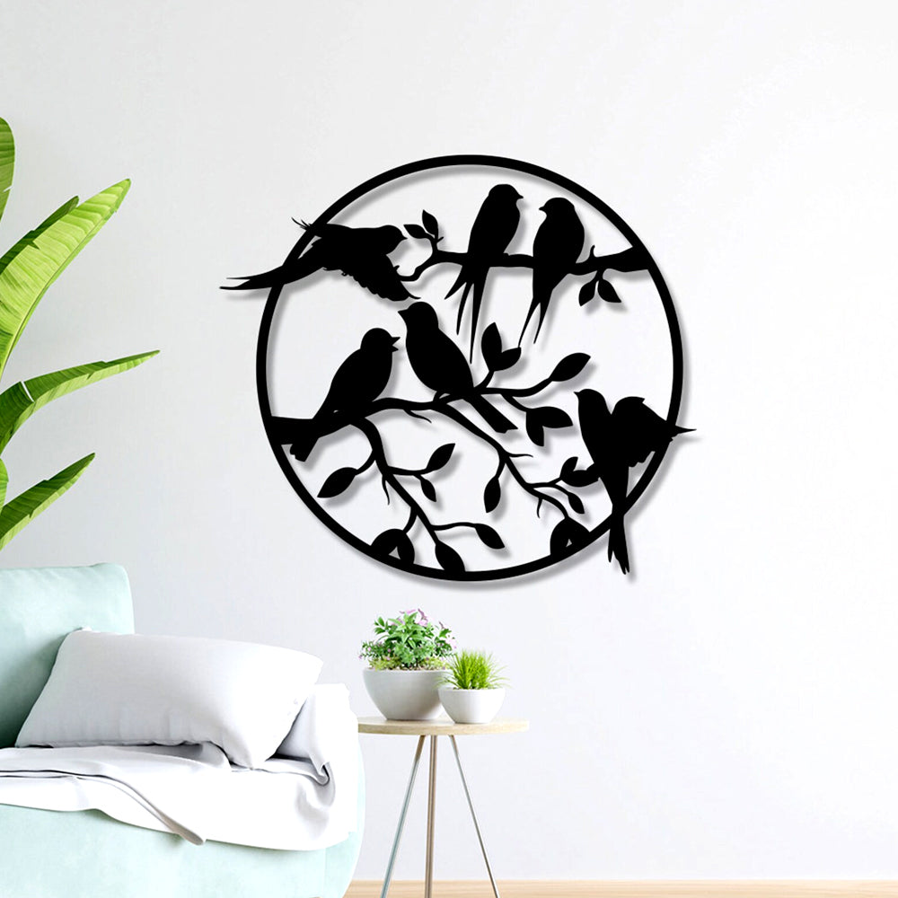 Plaque à Thème d'Oiseau Arbre Métal Décoratif Mural