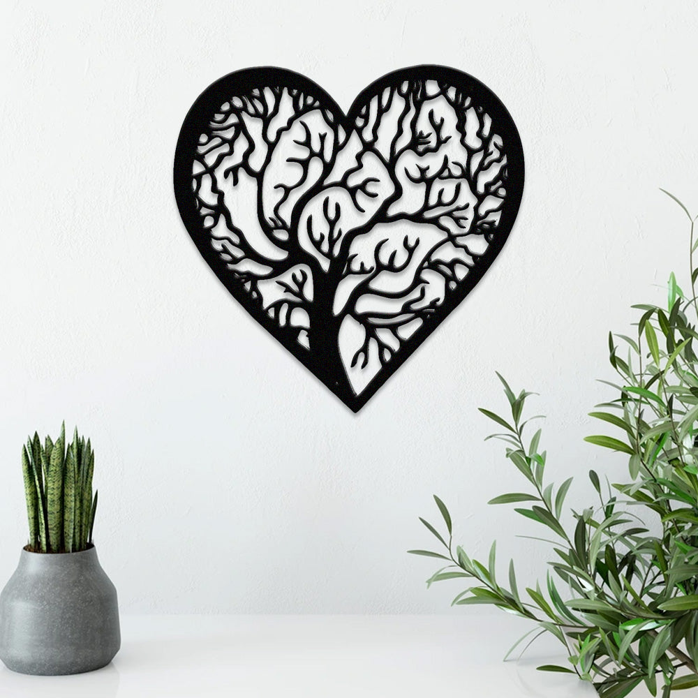 Arbre de Vie en Forme de Cœur Métal Décoratif Mural