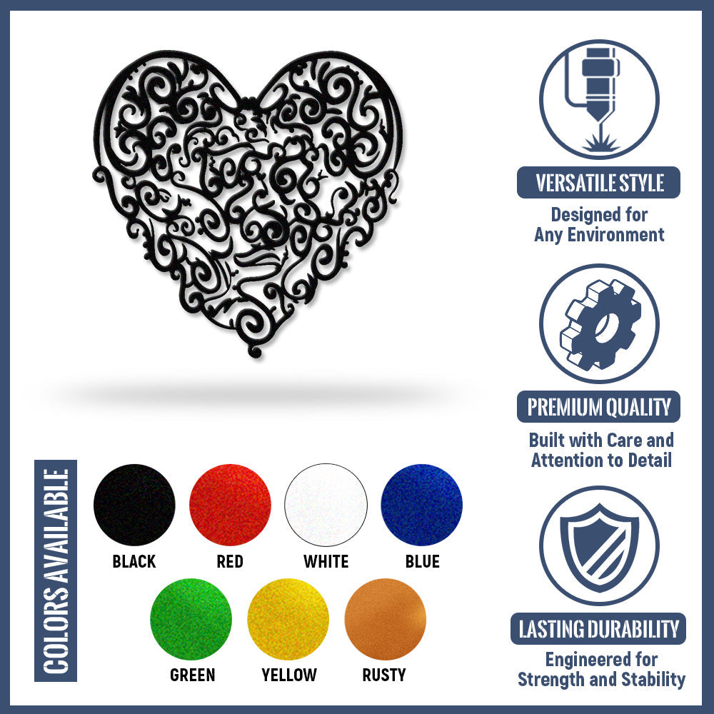 Amour Cœur à Rinceaux Ornés Métal Décoratif Mural