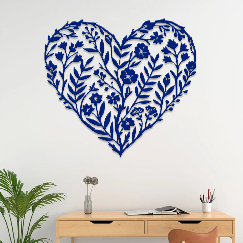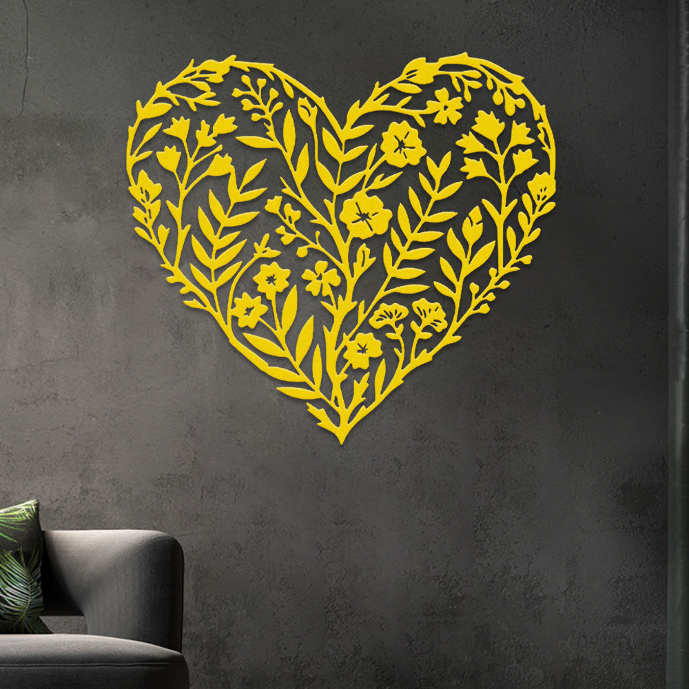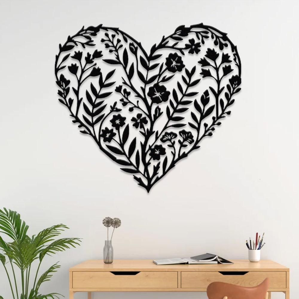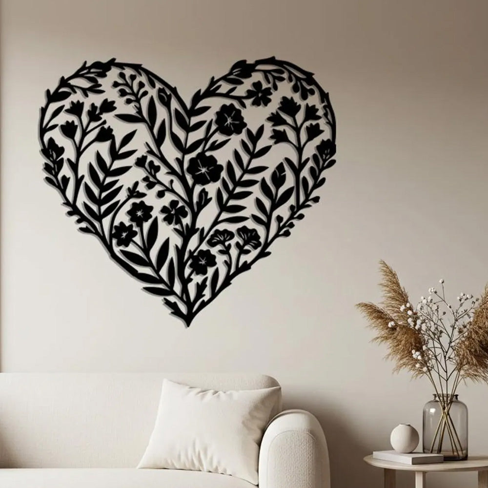 Cœur Fleuri à Vigne Métal Décoratif Mural