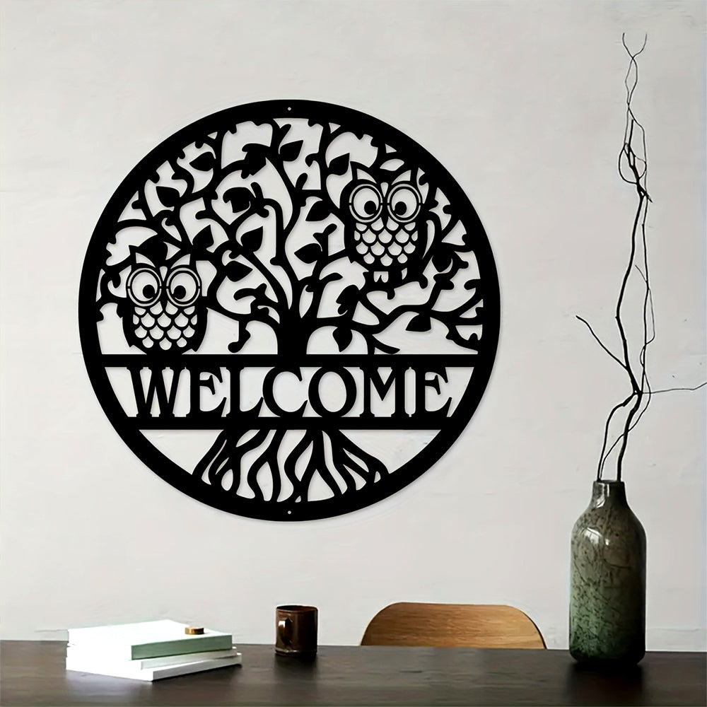 Arbre de la Vie et Hibou Métal Décoratif Mural