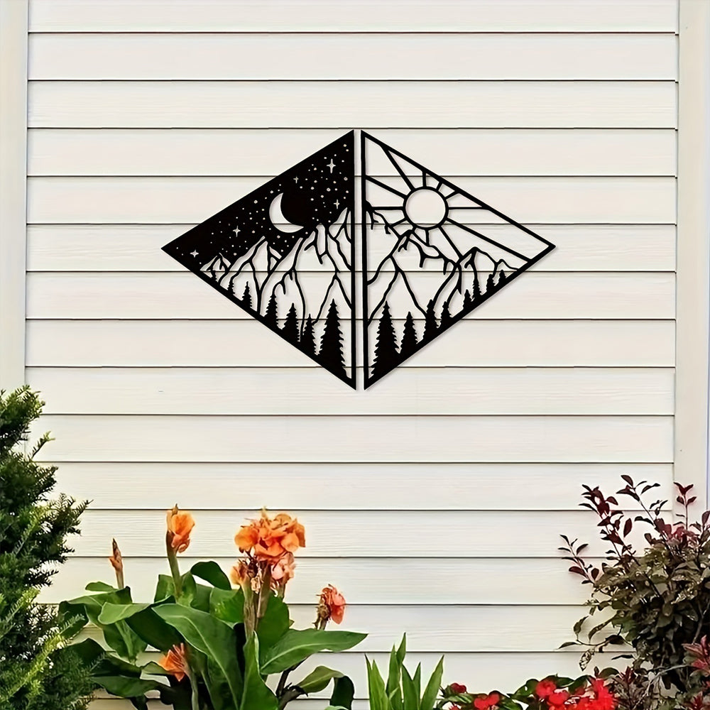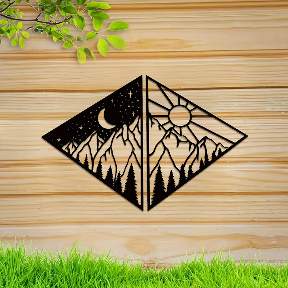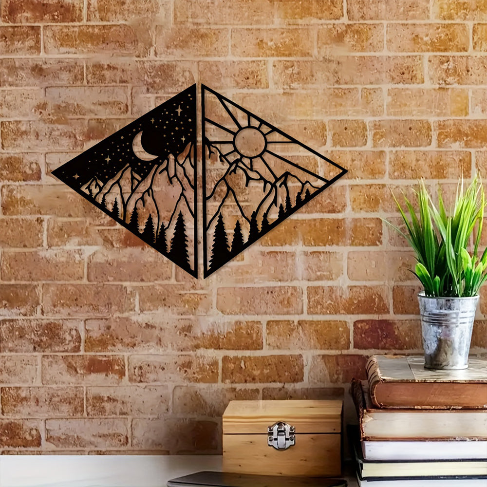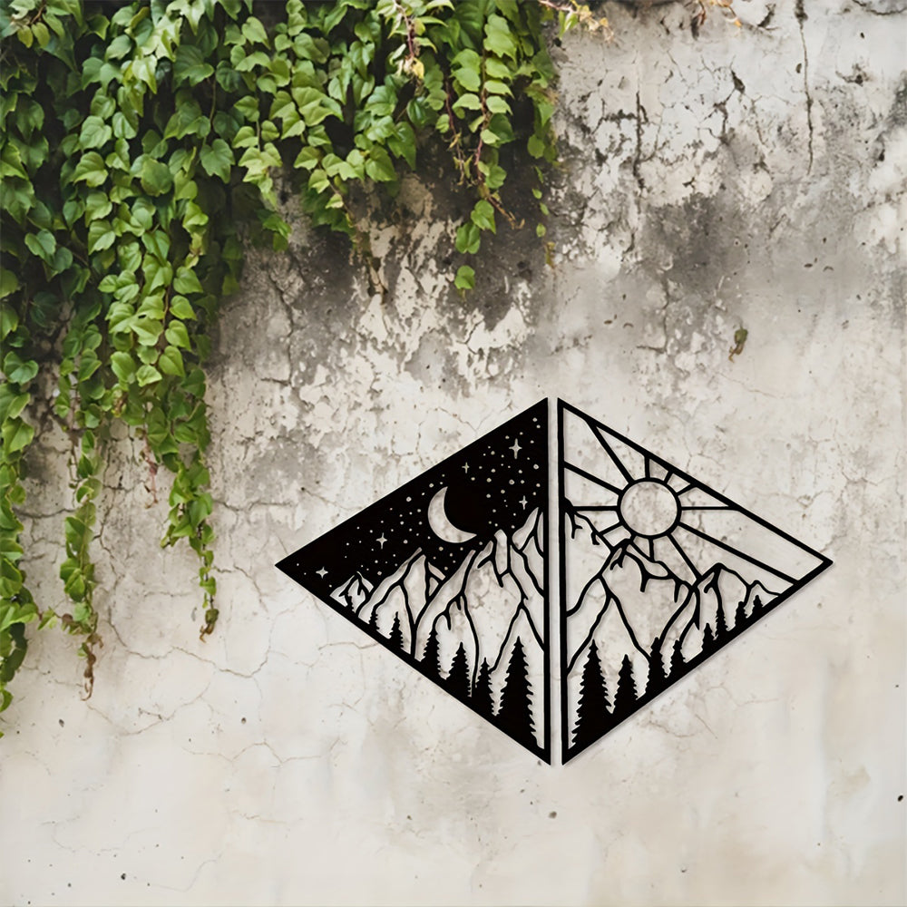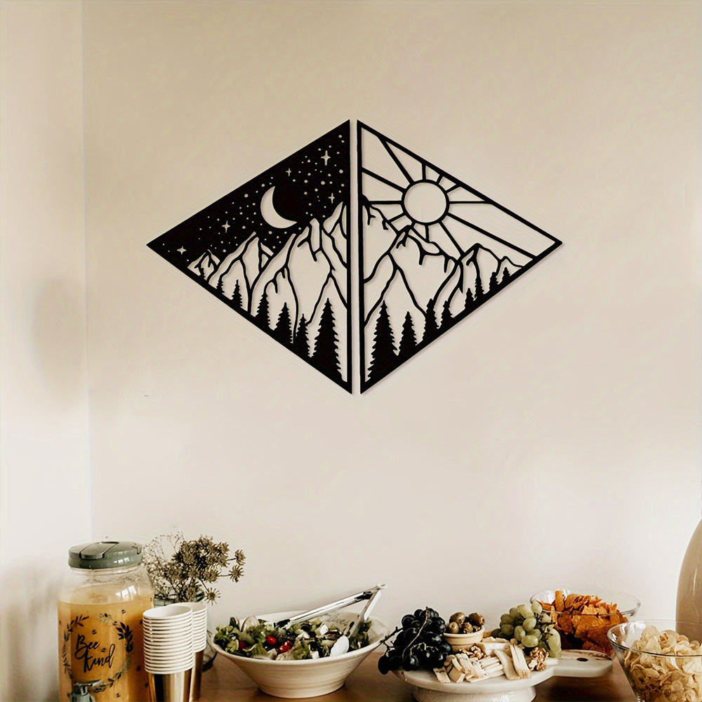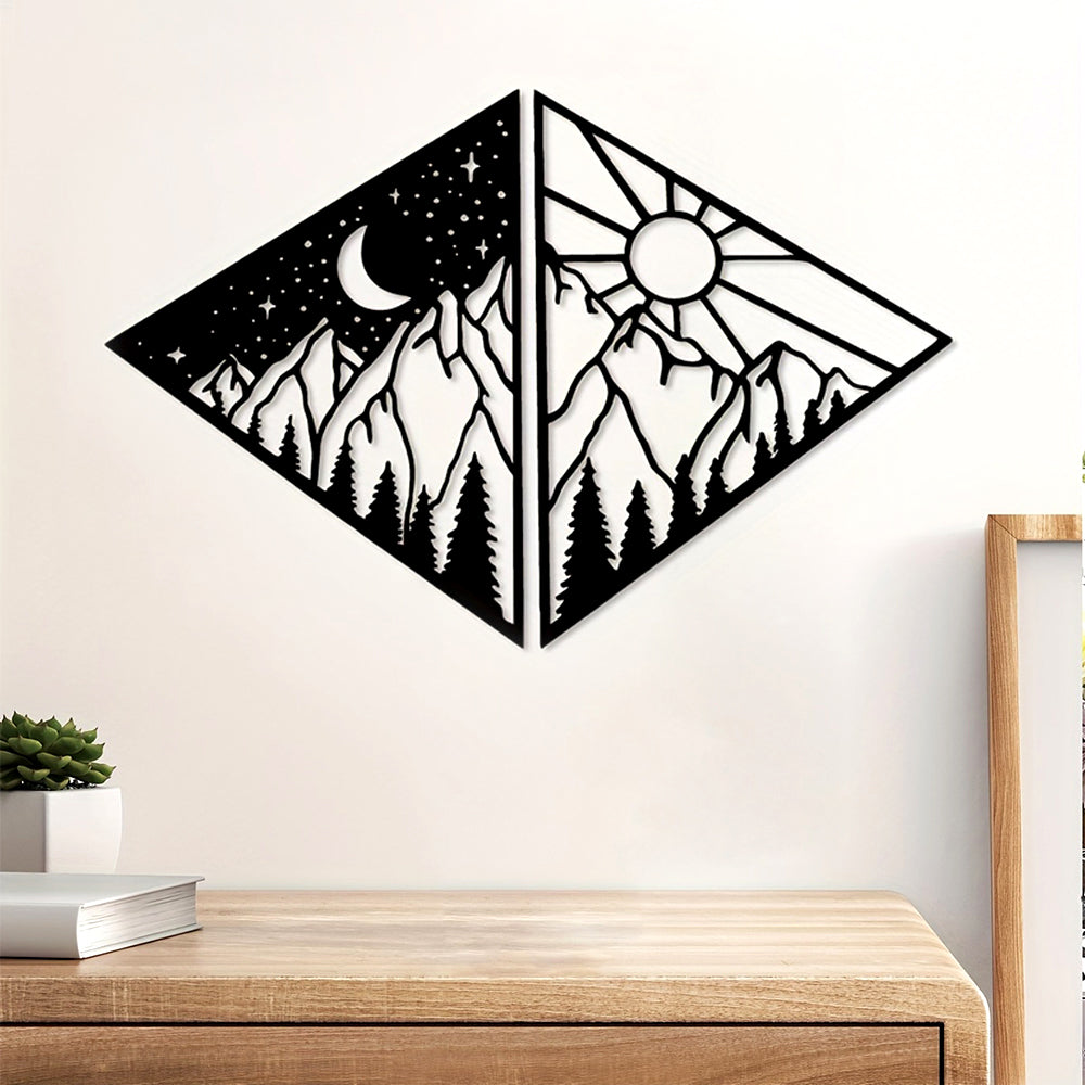2 Pièces Soleil Lune et Montagne Métal Décoratif Mural