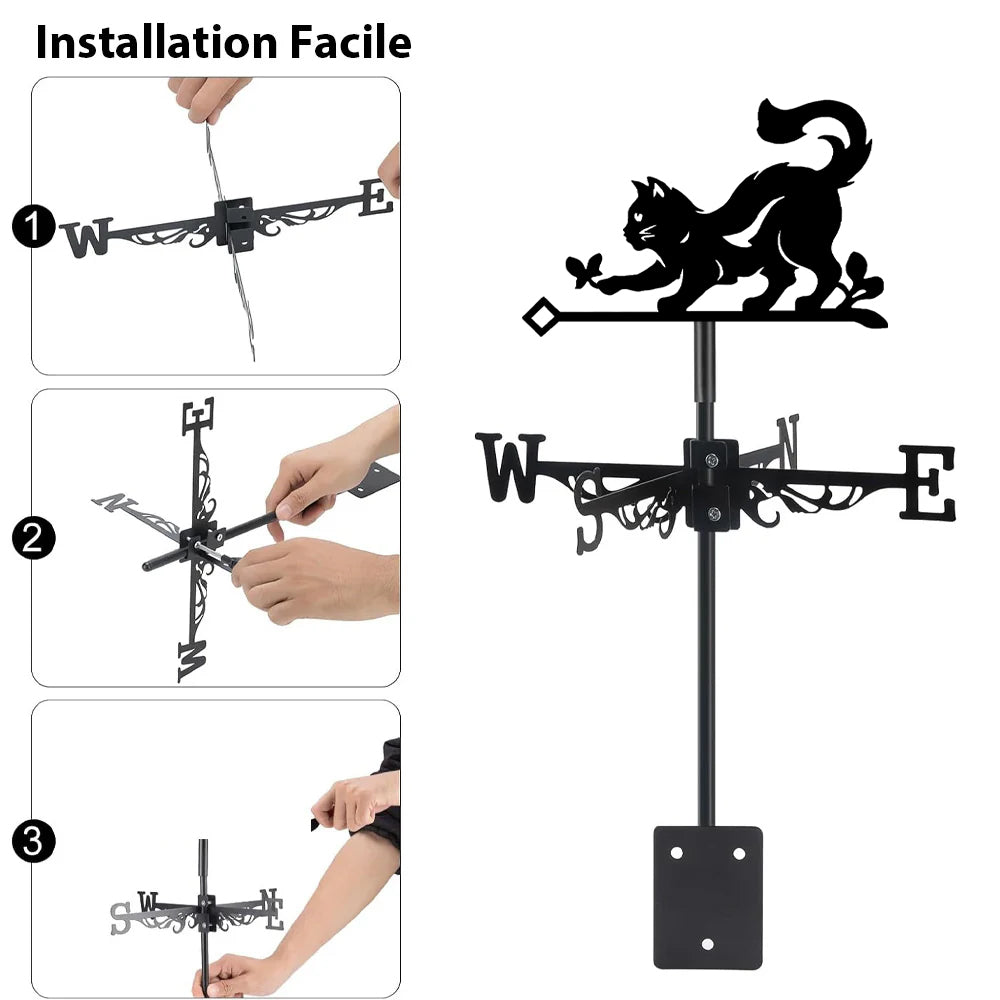 💕 Design Créatif : Cette girouette est fabriquée en acier inoxydable de haute qualité. Avec ses lignes droites élégantes et sa finition noire satinée, cet indicateur de vent anti-rouille est orné de motifs exquis.