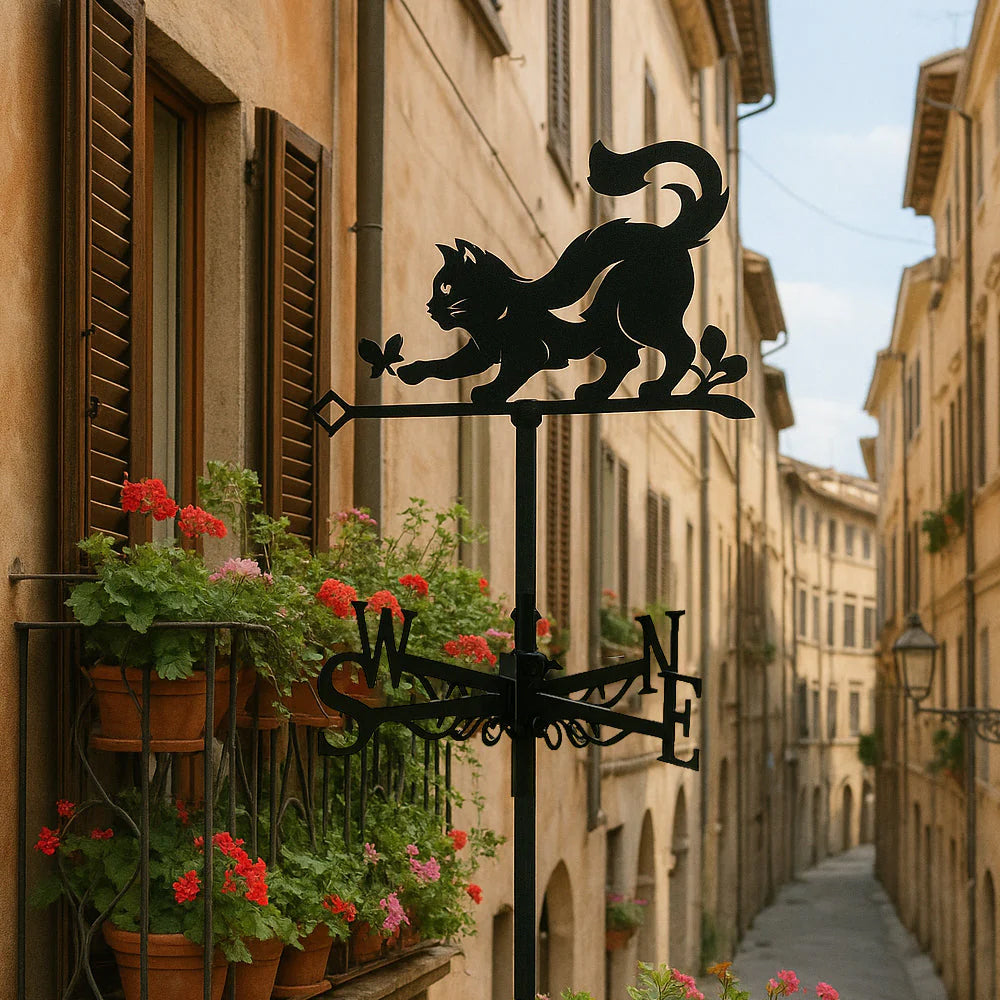 Girouette en Acier Inoxydable Chat et Papillon