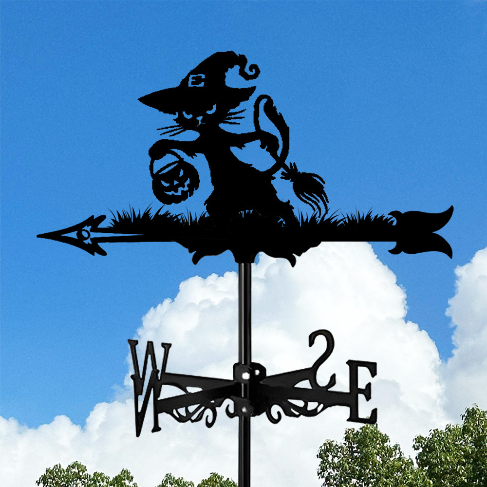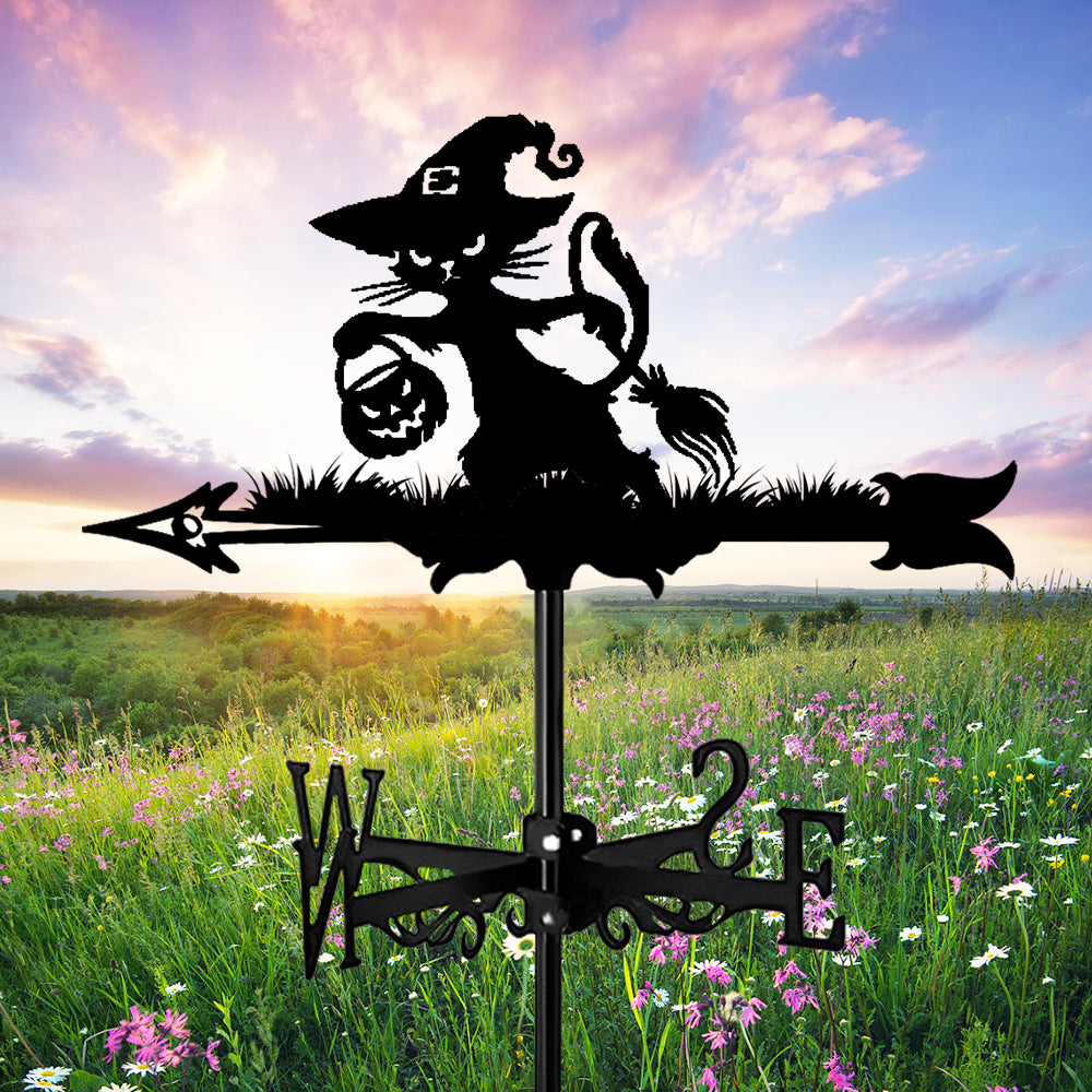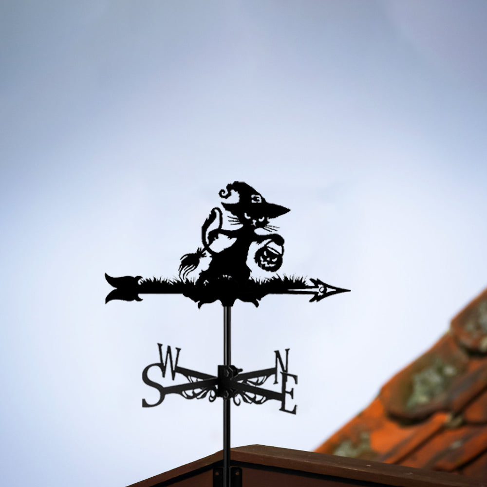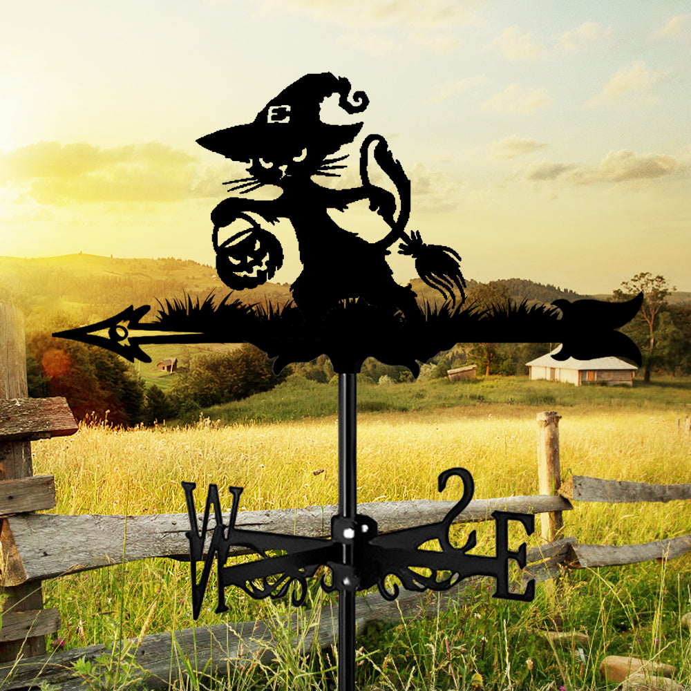 Girouette en Acier Inoxydable Chat Noir à la Lanterne-Citrouille Halloween