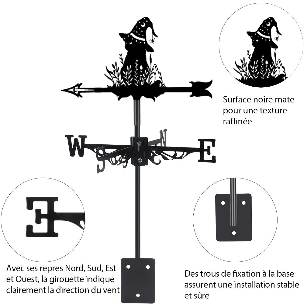 Girouette en Acier Inoxydable Chat-Sorcière Halloween