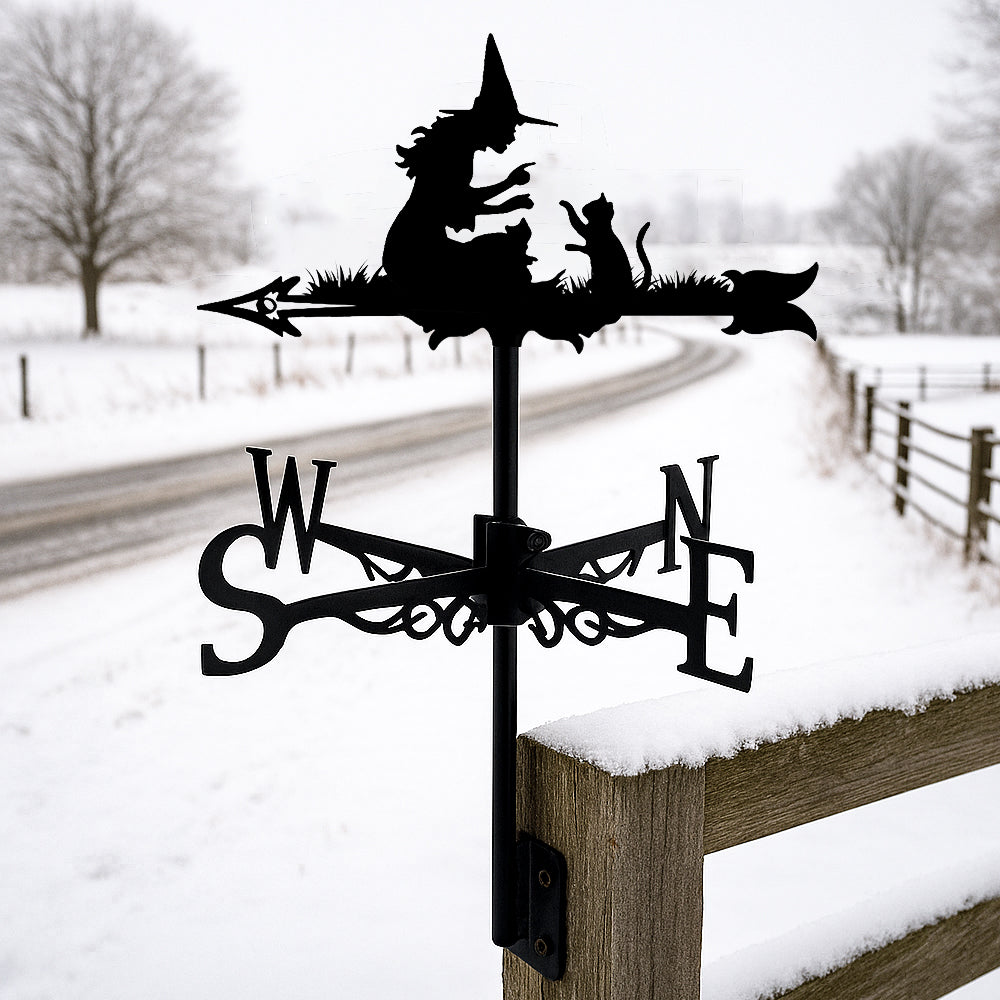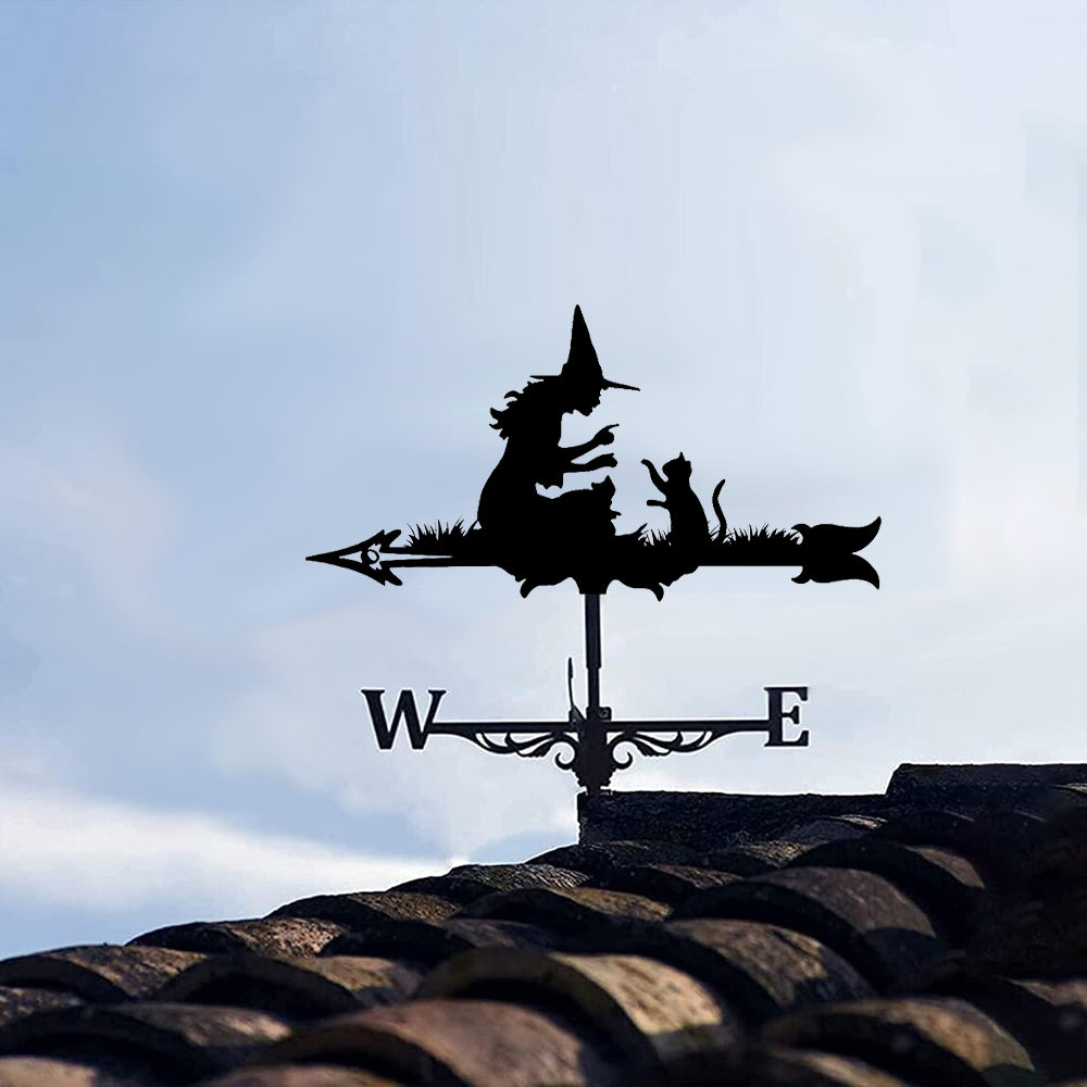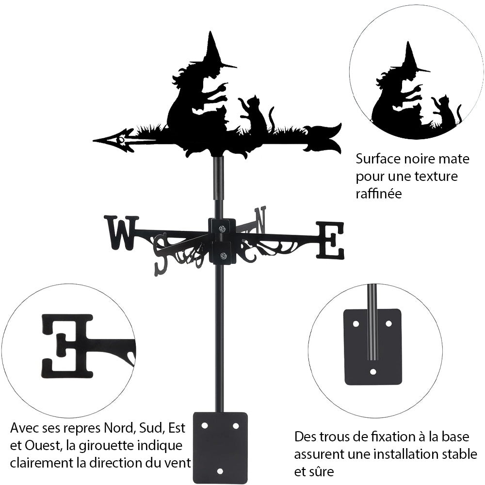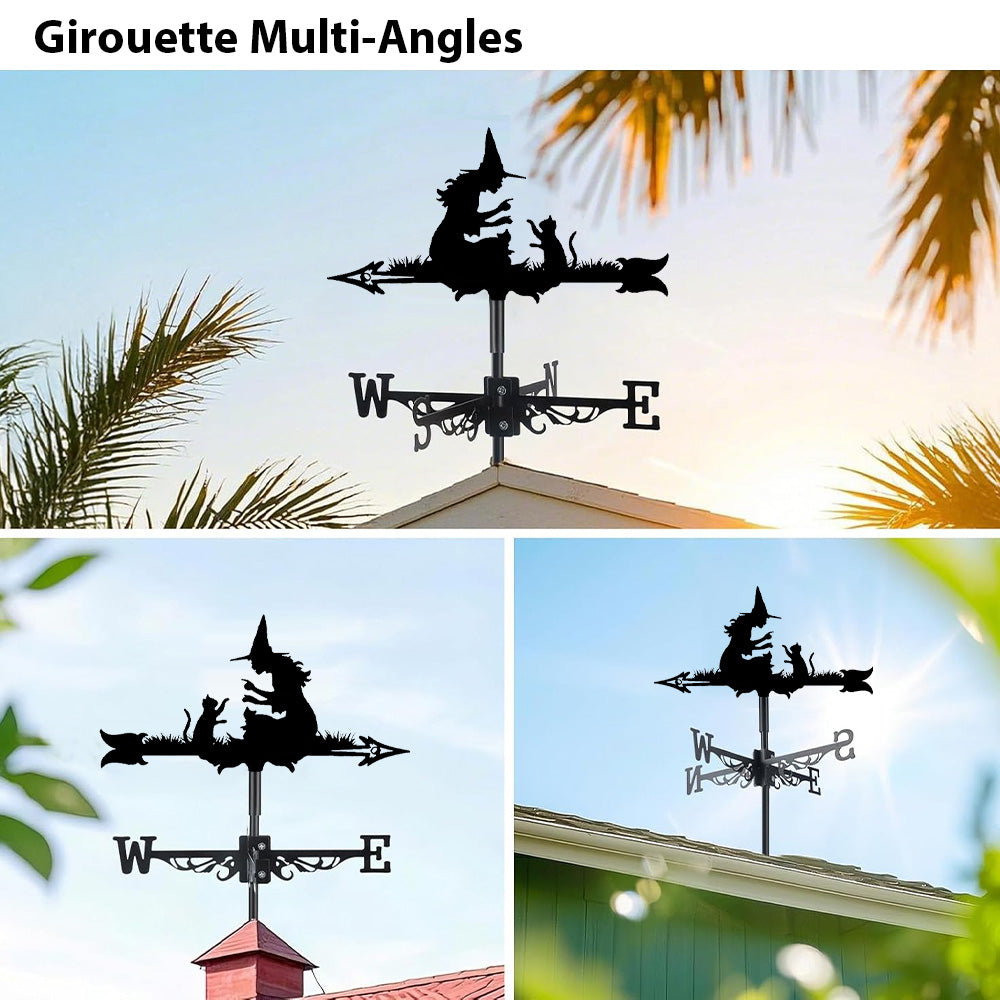 Girouette en Acier Inoxydable Halloween Sorcière et Chat