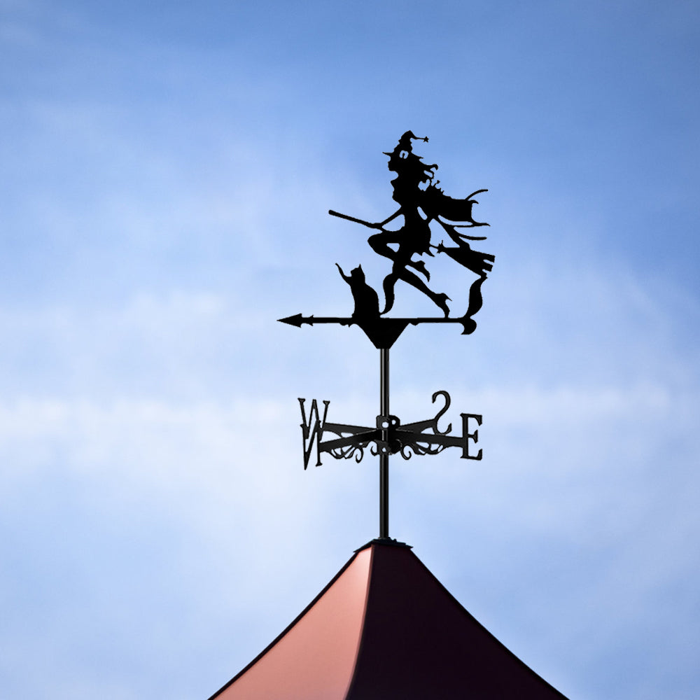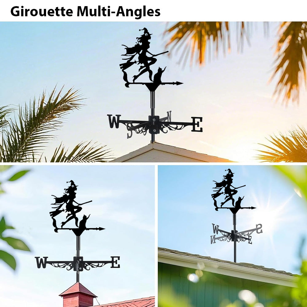 Girouette en Acier Inoxydable Sorcière Élégante et Chat Halloween