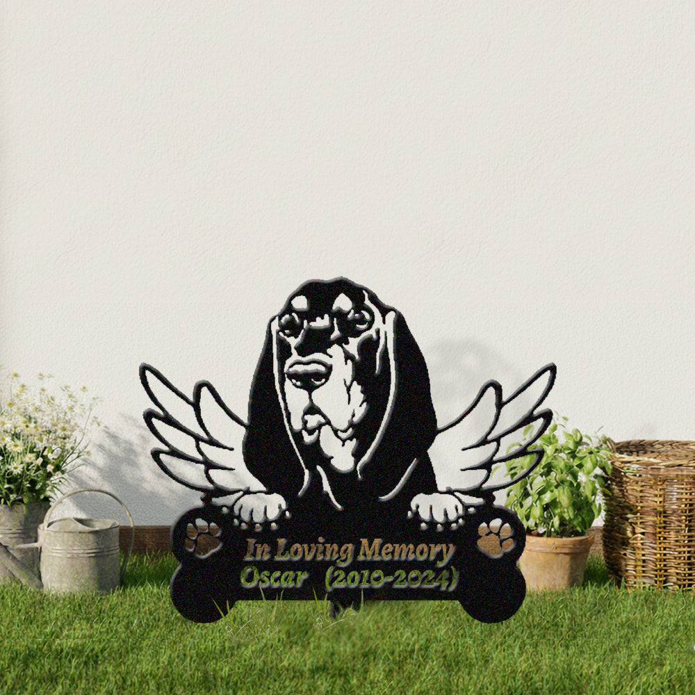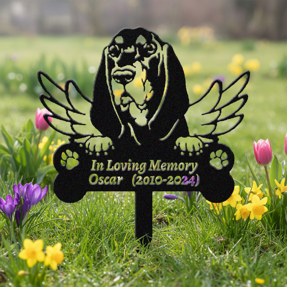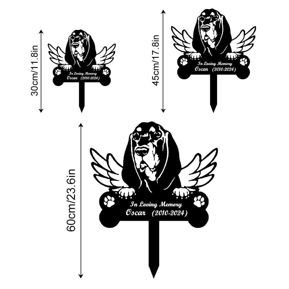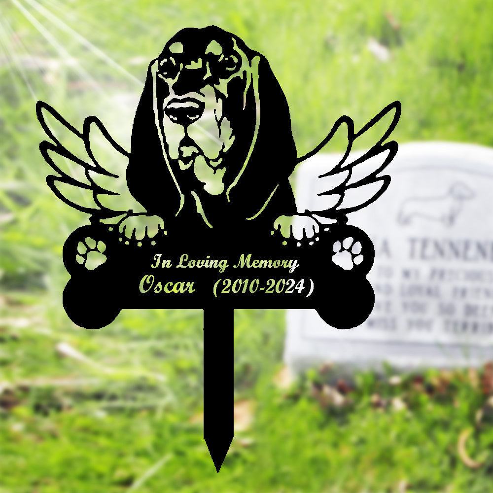 Black and Tan Coonhound Tuteur Commémoratif Personnalisé avec Ailes