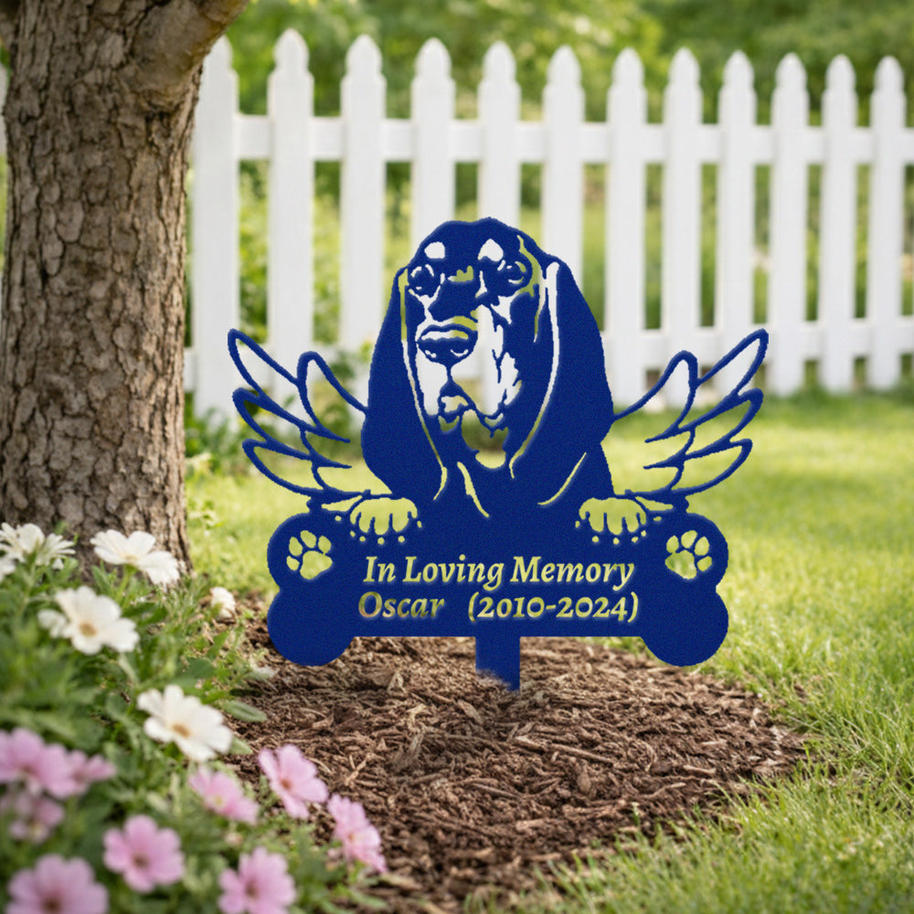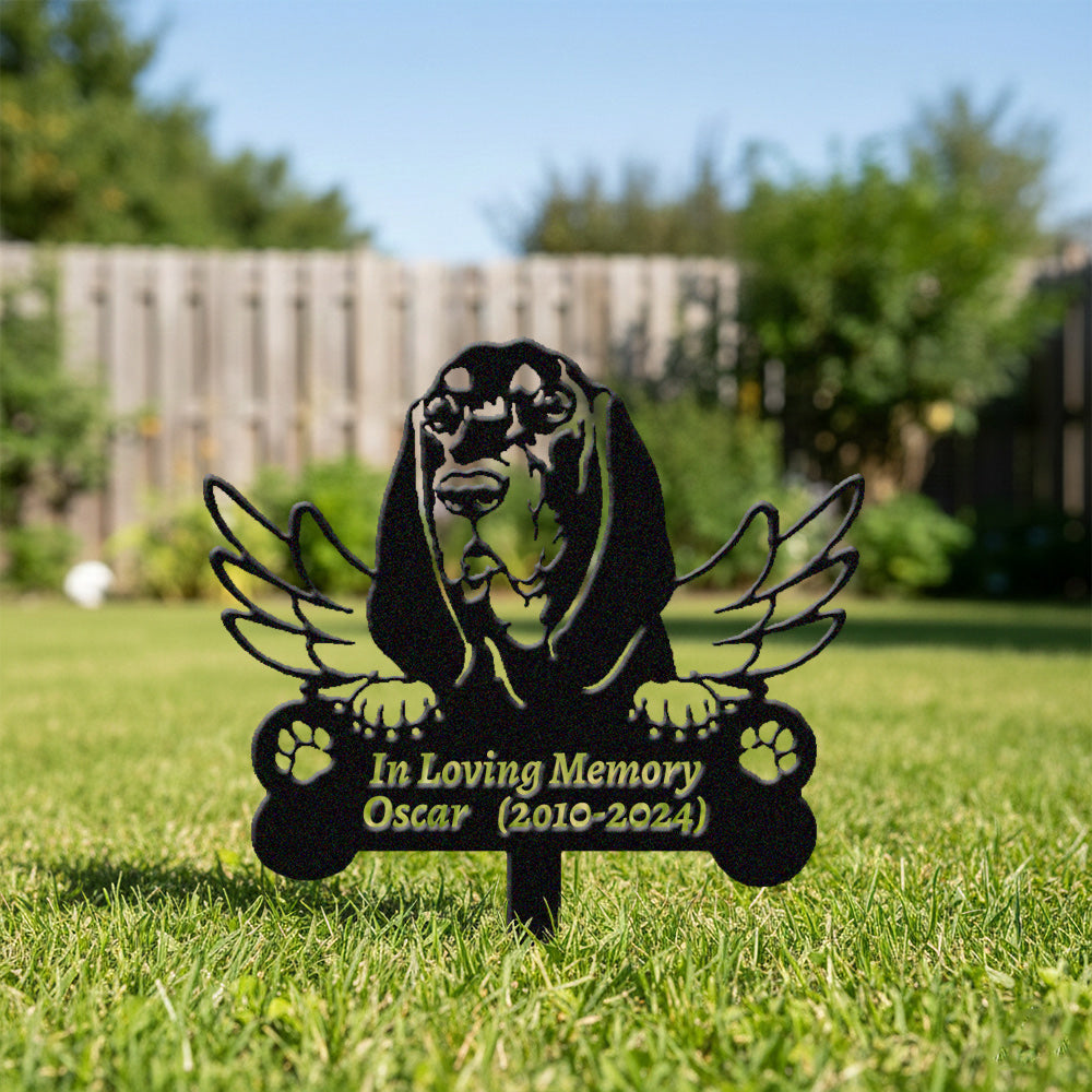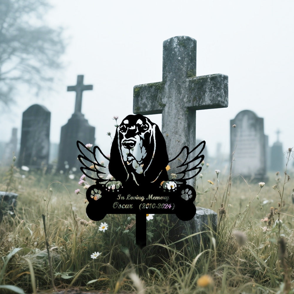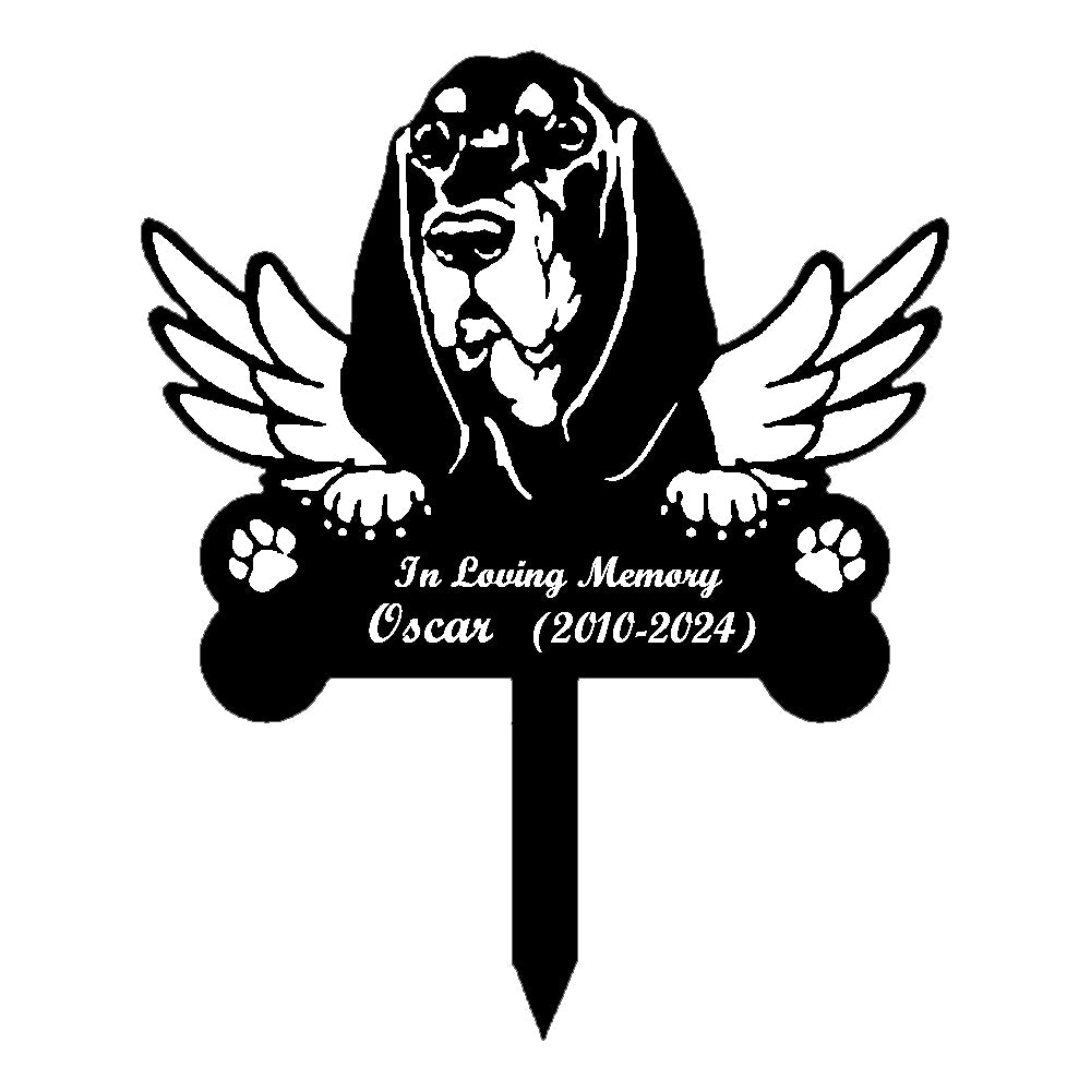 Black and Tan Coonhound Tuteur Commémoratif Personnalisé avec Ailes