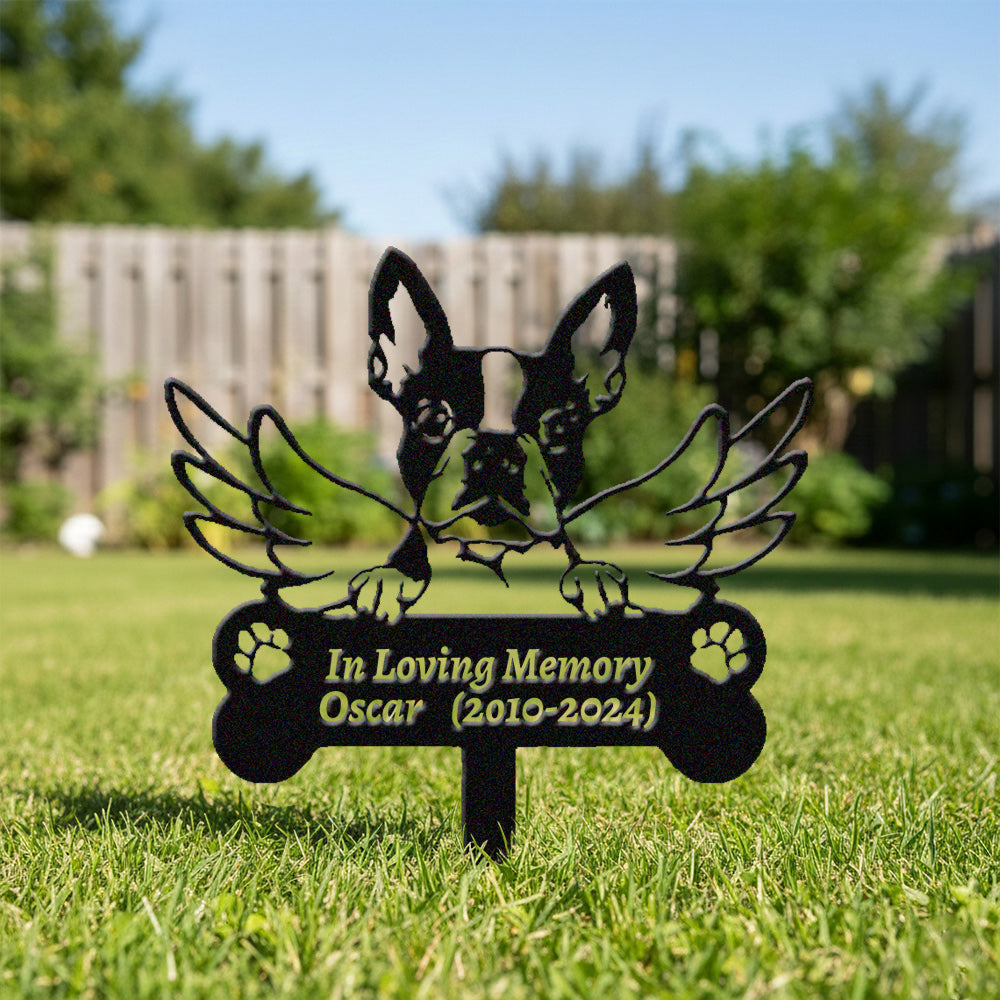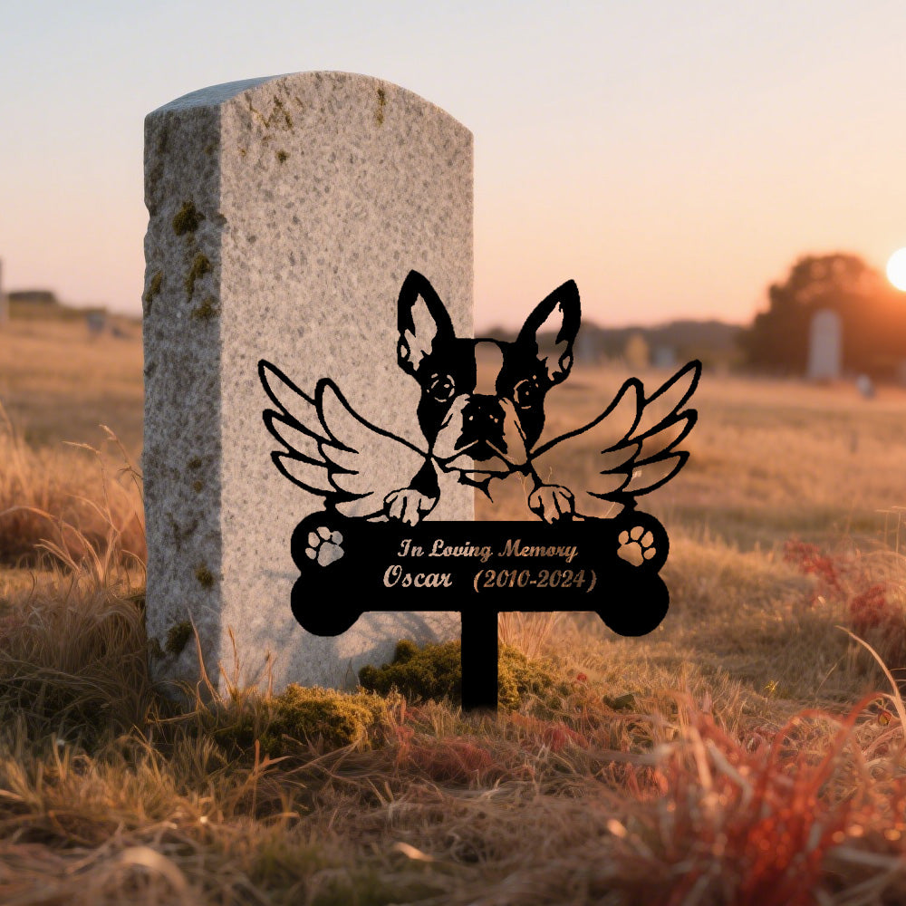 Boston Terrier Tuteur Commémoratif Personnalisé avec Ailes