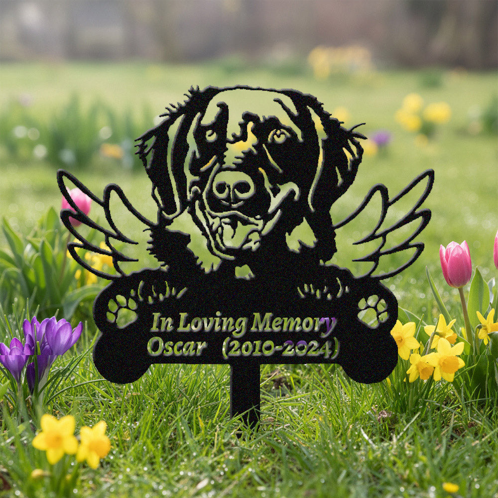 Retriever à Poil Plat Tuteur Commémoratif Personnalisé avec Ailes