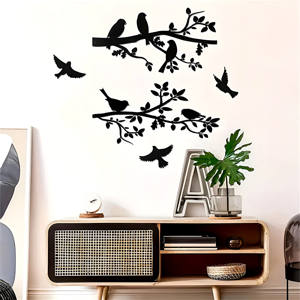 2 Pièces Oiseaux Simples sur l'Arbre Art de l'Arrêt Silhouette Décoratif Mur Métal