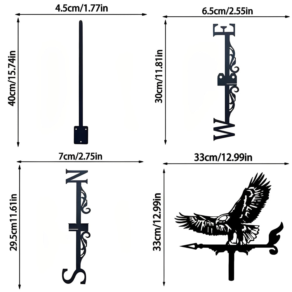 🌙 Indicateur de Direction du Vent : Notre conception unique à point de contact permet à notre girouette de tourner facilement avec le vent. Le pivot unique garantit une rotation fluide et sans problème. Indique la direction du vent.