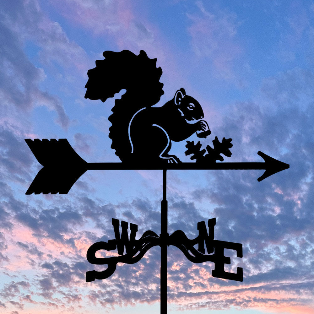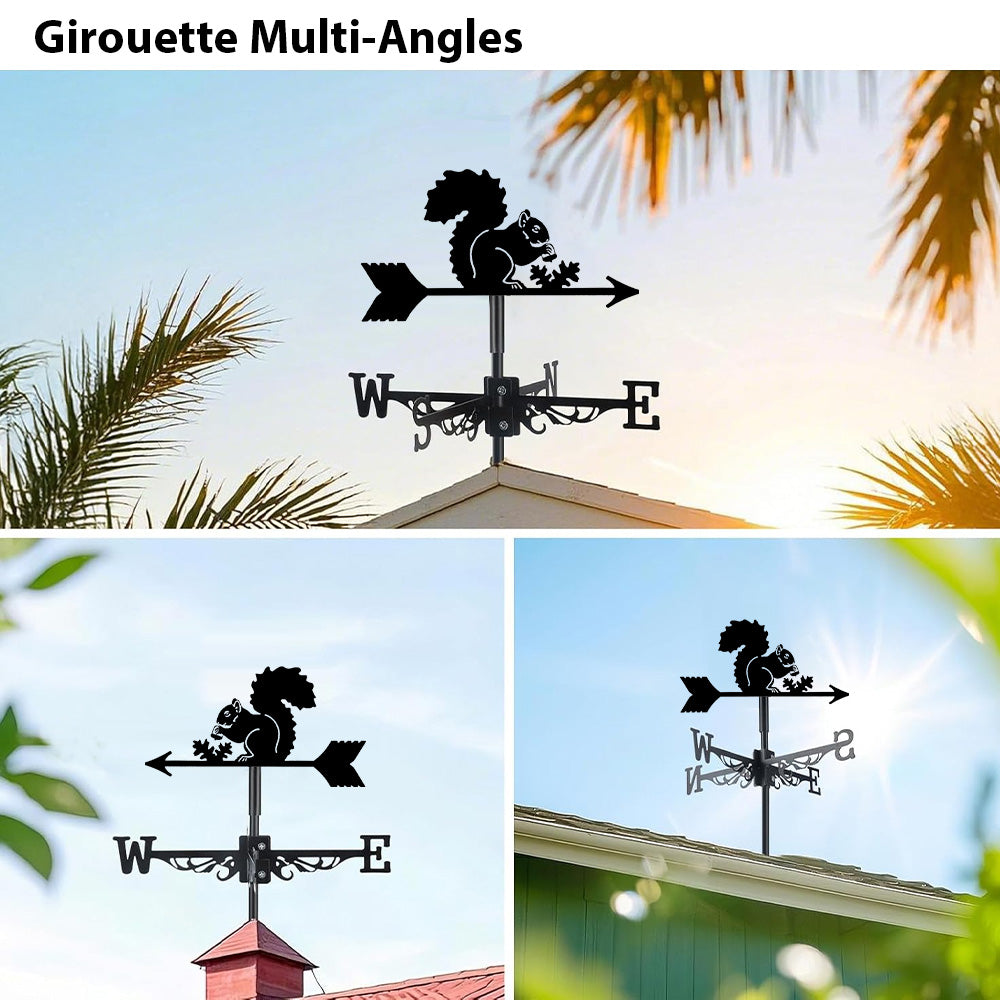Girouette en Acier Inoxydable Écureuil Mangant une Pomme de Pin
