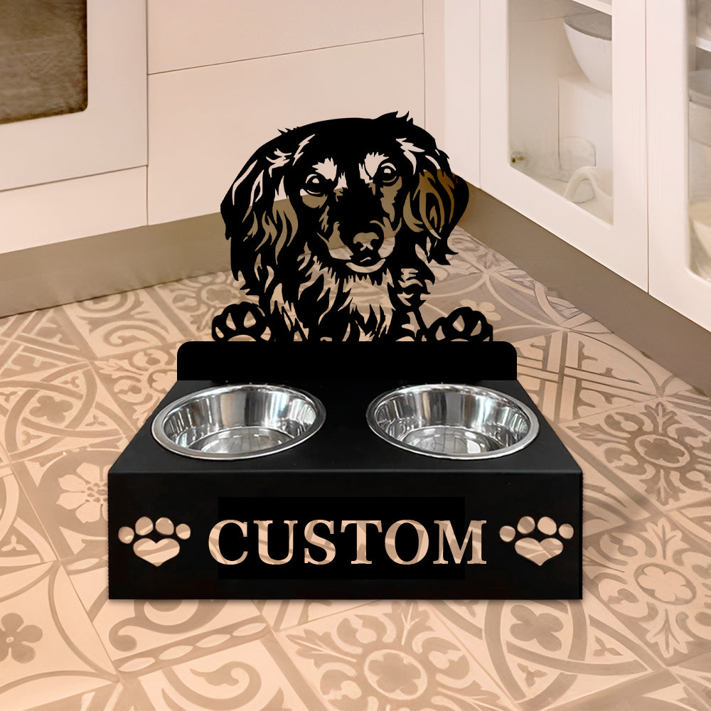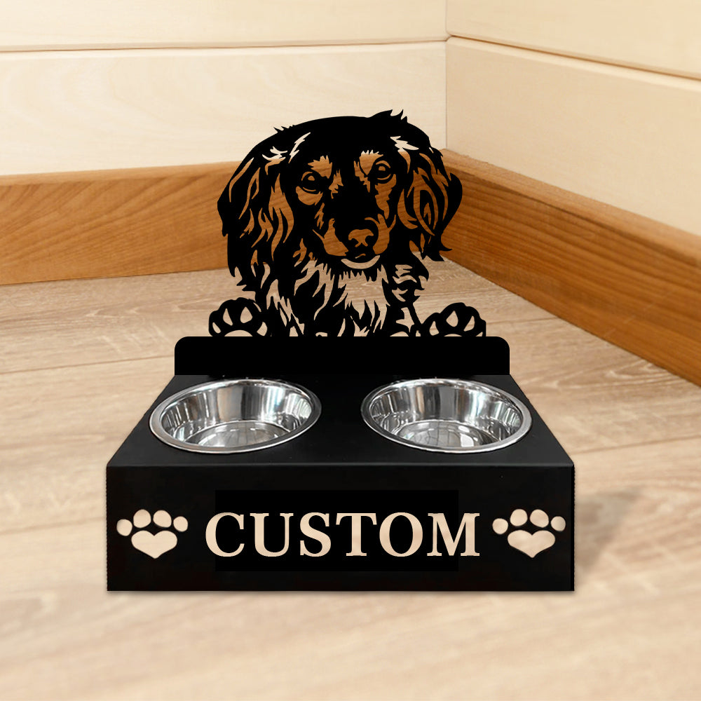 Nom Personnalisé pour Teckel à Poil Long Porte-Gamelle pour Animaux