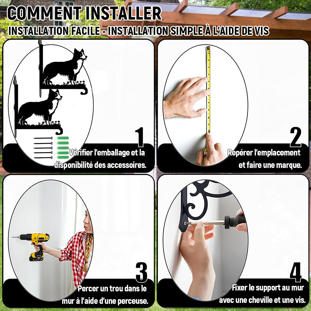 Border Collie de Luxe Support de Plantes à Suspendre Métallique
