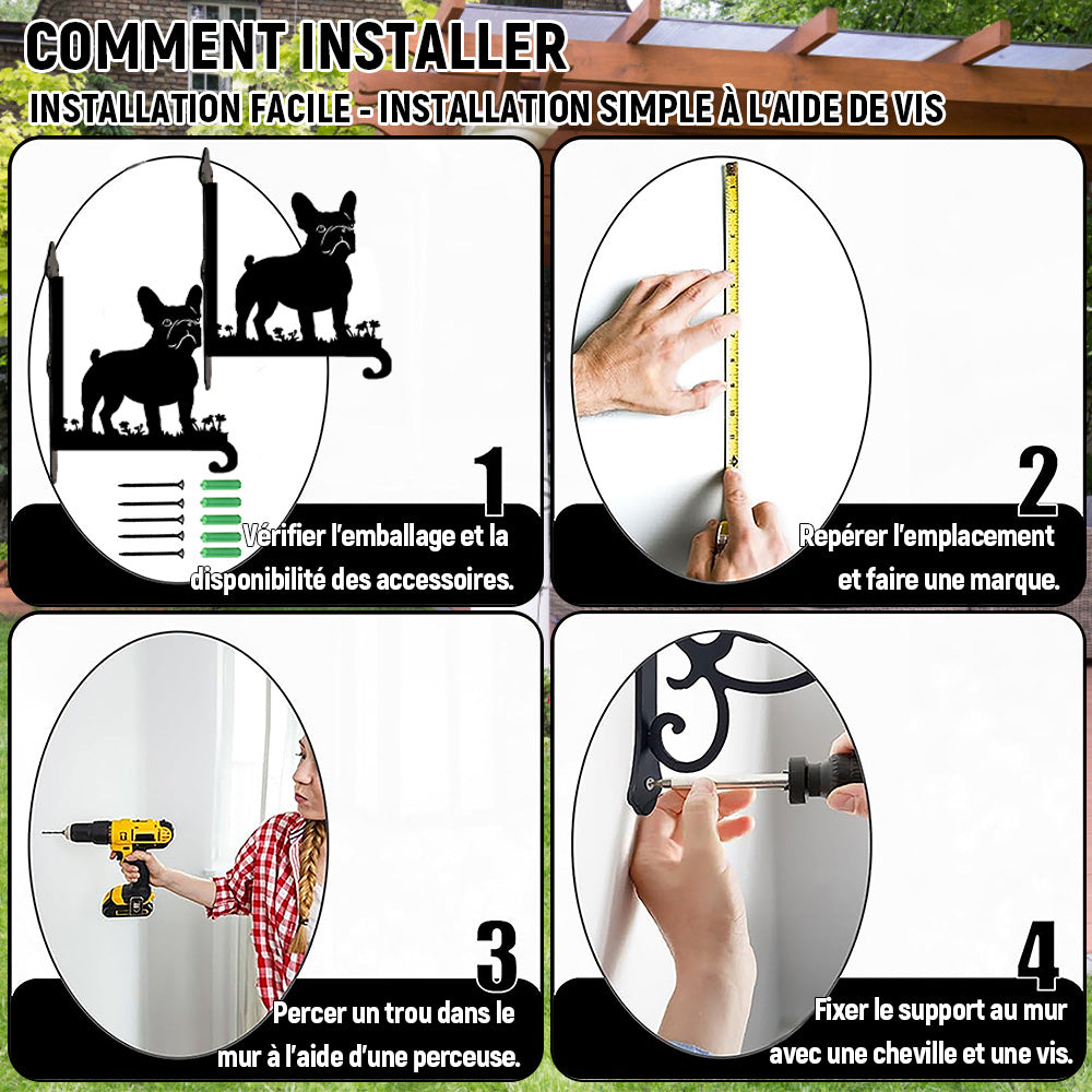 Bouledogue Français Support de Plantes à Suspendre Métallique