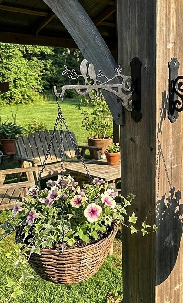 🏗️ L'acier carbone épaissi supporte sans fléchir ni plier les paniers suspendus de 30 cm et les mangeoires à oiseaux les plus lourds.