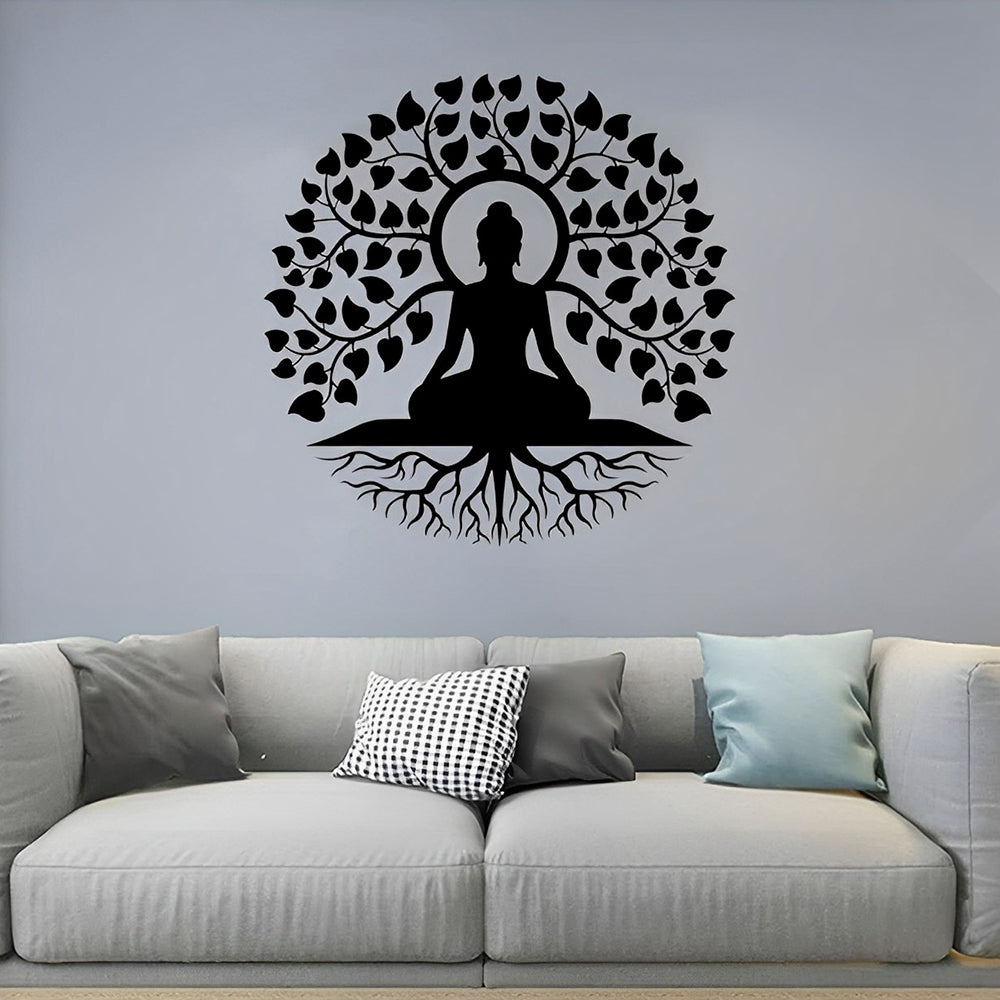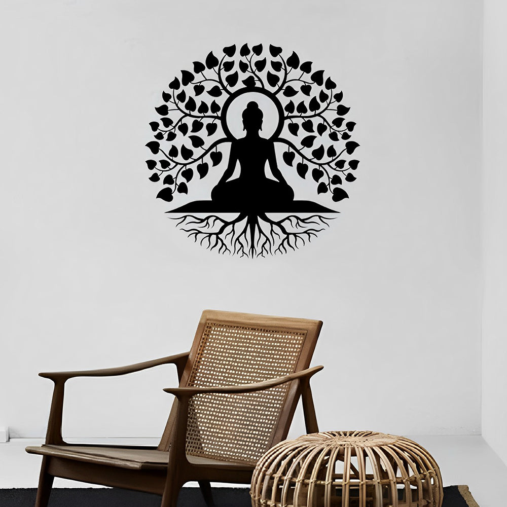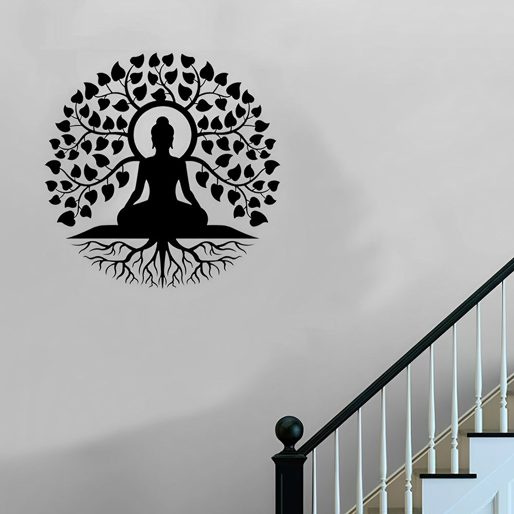 Bouddha Arbre de la Vie Yoga Méditation Art Mural en Métal
