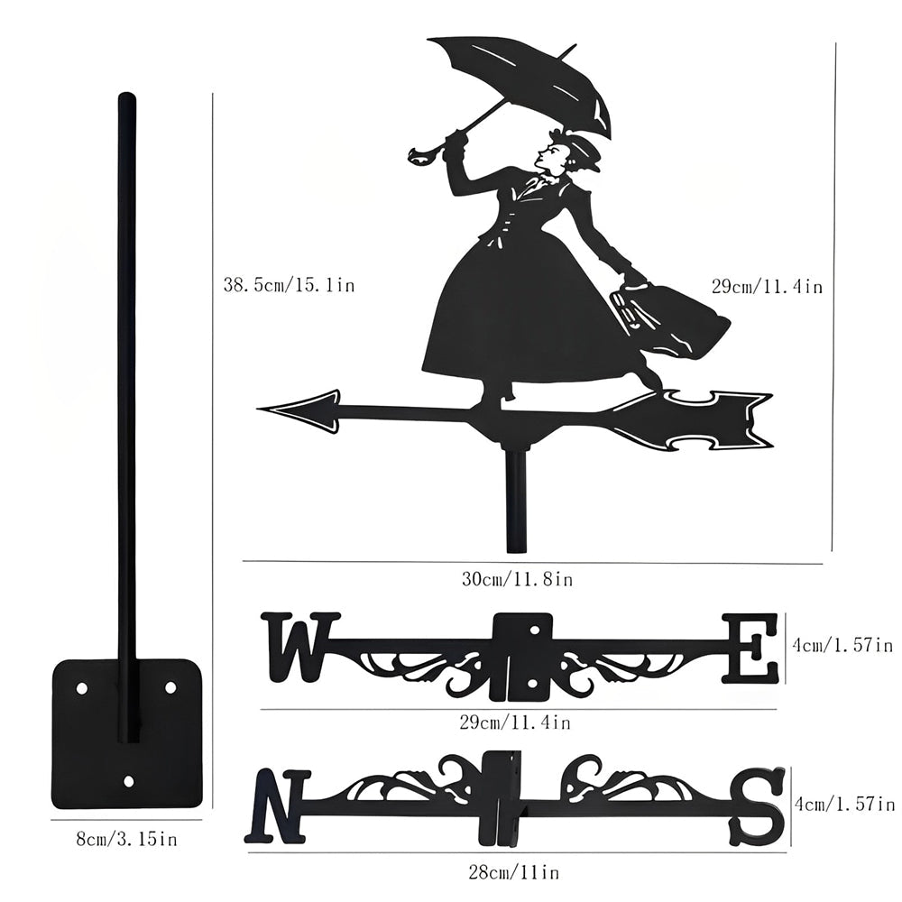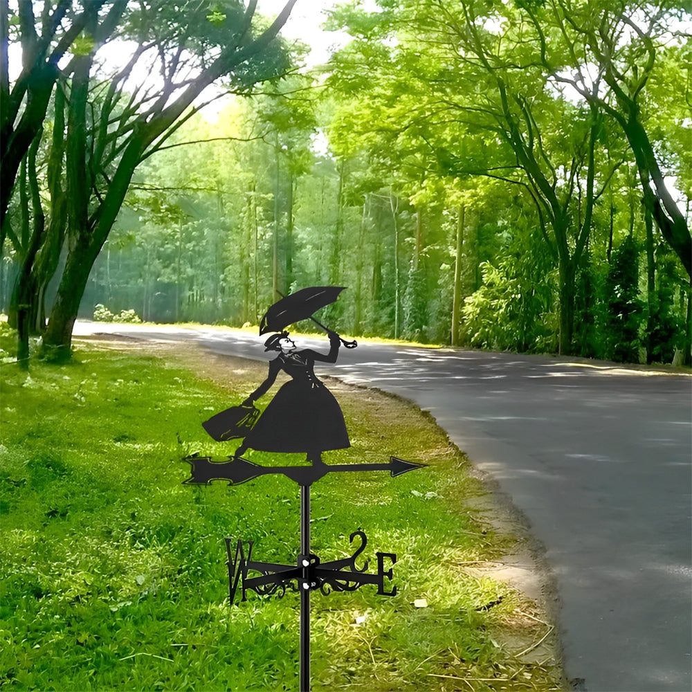 Girouette en Acier Inoxydable Dame au Parapluie