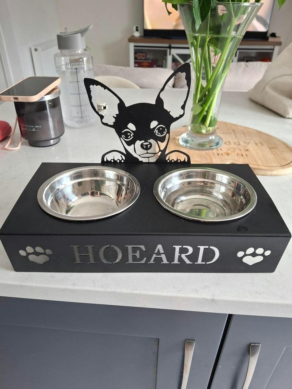 Ce porte-gamelle pour animaux est si amusant ! Vous pouvez choisir la race de votre compagnon et personnaliser son nom !