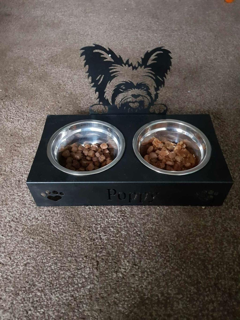 Ce porte-gamelle pour animaux est si amusant ! Vous pouvez choisir la race de votre compagnon et personnaliser son nom !