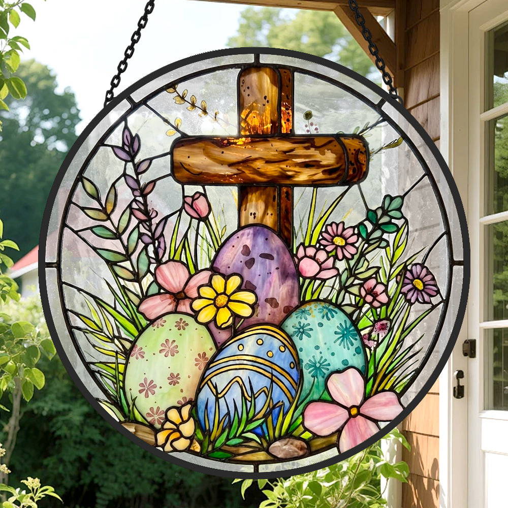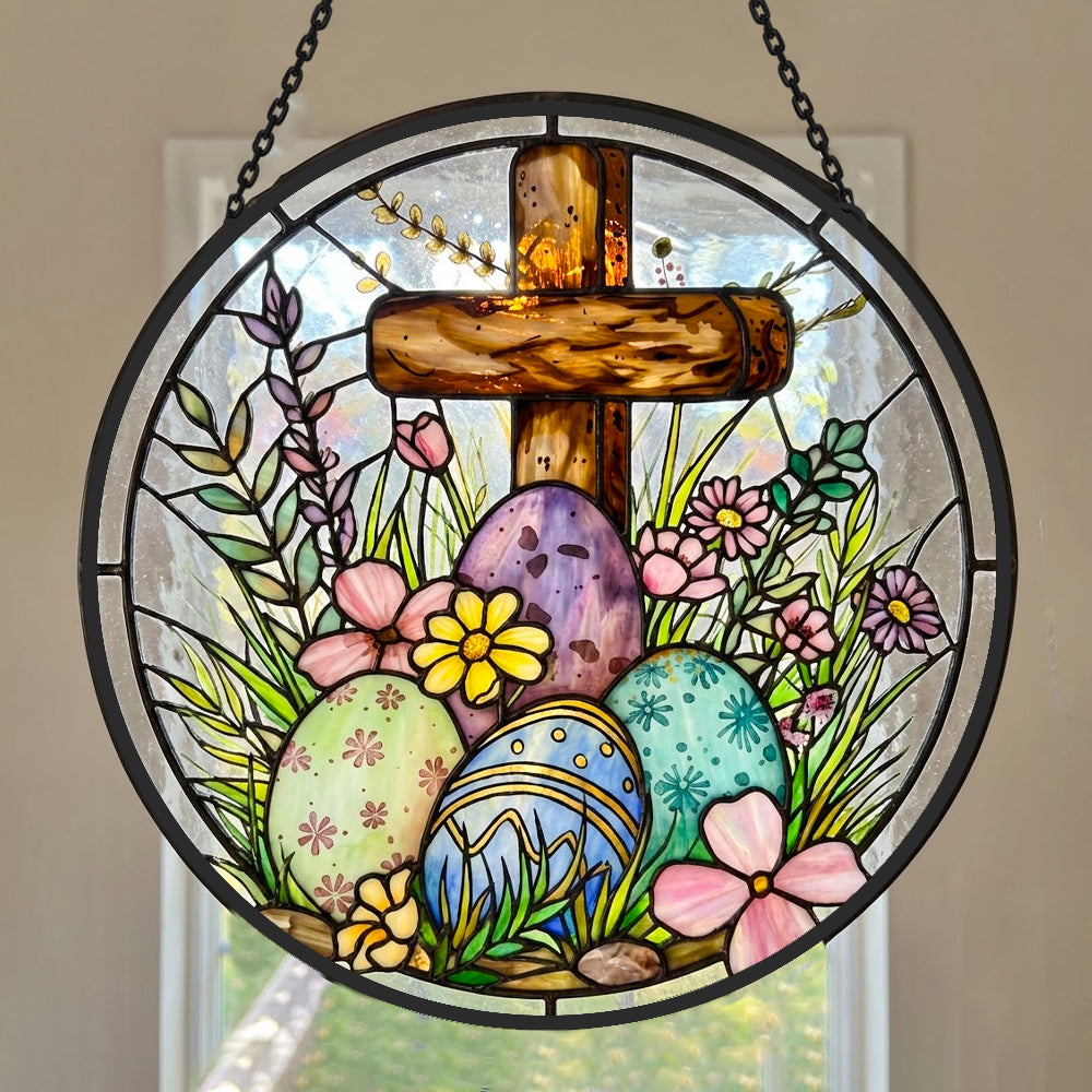 Croix Attrape-Soleil en Vitrail - Décoration Suspendue pour Fenêtre
