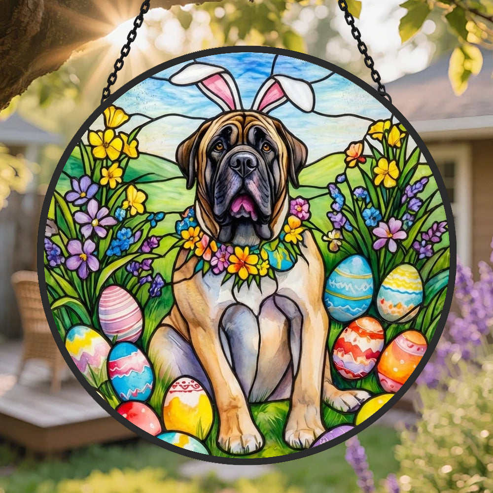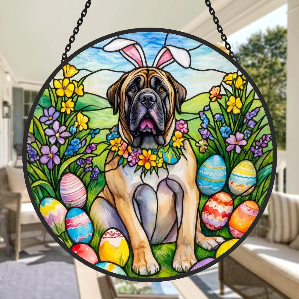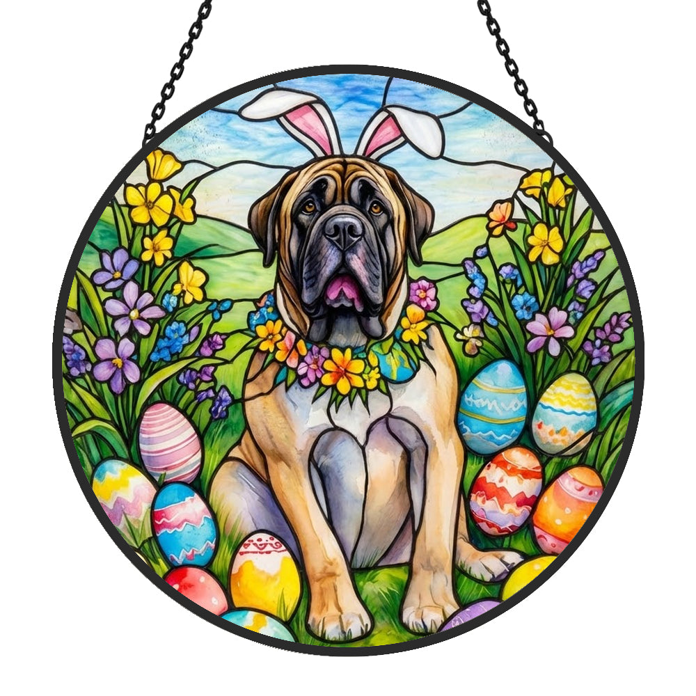 Dogue Attrape-Soleil en Vitrail - Décoration Suspendue pour Fenêtre