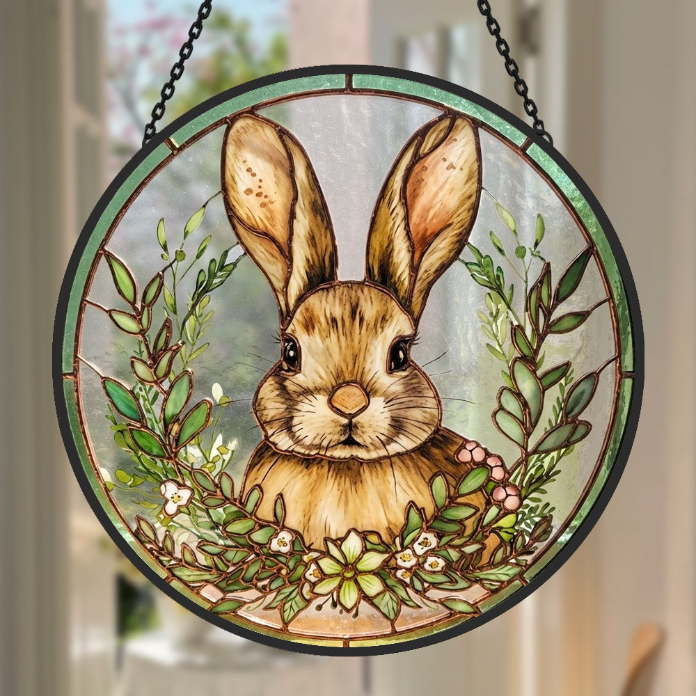 Lapin de Pâques et Fleur Attrape-Soleil en Vitrail - Décoration Suspendue pour Fenêtre