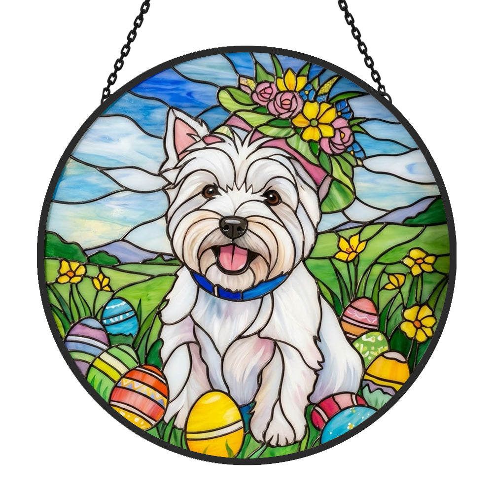 West Highland White Terrier Attrape-Soleil en Vitrail - Décoration Suspendue pour Fenêtre