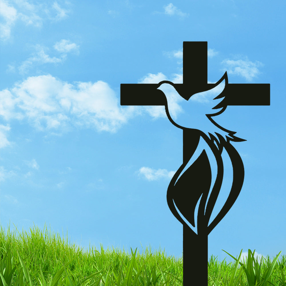 Colombe de Pâques Croix Plaque Métal Décoration Extérieure de Jardin